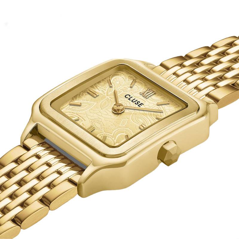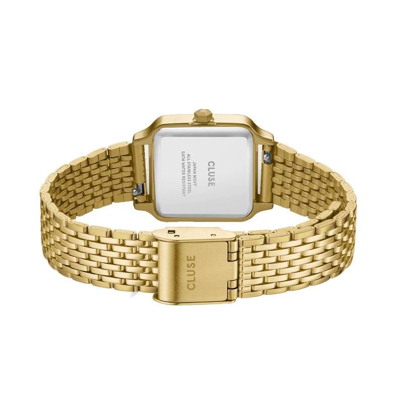 Le bracelet de cette montre Cluse est une invitation au luxe avec son acier inoxydable de couleur dorée. Parfaitement assorti au boîtier, il complète l'élégance générale de ce garde-temps. Le bracelet arbore une finition brossée et polie, manipulée avec soin pour offrir un équilibre idéal entre brillance et texture mate. L'entrecorne de 14 mm garantit un maintien confortable et sécurisé sur le poignet. De plus, le fermoir à coulisse assure une manipulation aisée, facilitant ainsi la pose ou le retrait de la montre.