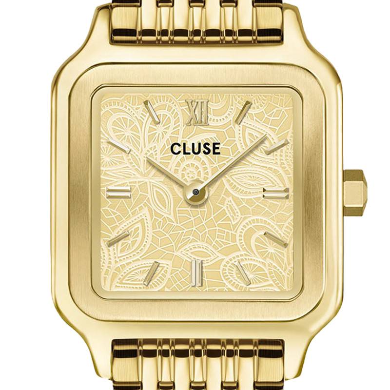 Le cadran de la montre Cluse est un véritable bijou de subtilité et de design artistique. Délicatement orné d'un motif fleuri, il évoque une délicatesse printanière tout en conservant une touche de modernité. Les heures sont indiquées par un mix d'index et de chiffres romains, qui ajoutent une touche classique à cet ensemble contemporain. Ce design s'harmonise à la perfection avec la teinte jaune du cadran, créant un effet visuel agréable qui attire le regard sans effort. Le verre qui le protège est un verre minéral plat, garantissant une bonne résistance aux rayures pour préserver la beauté du cadran au fil du temps.