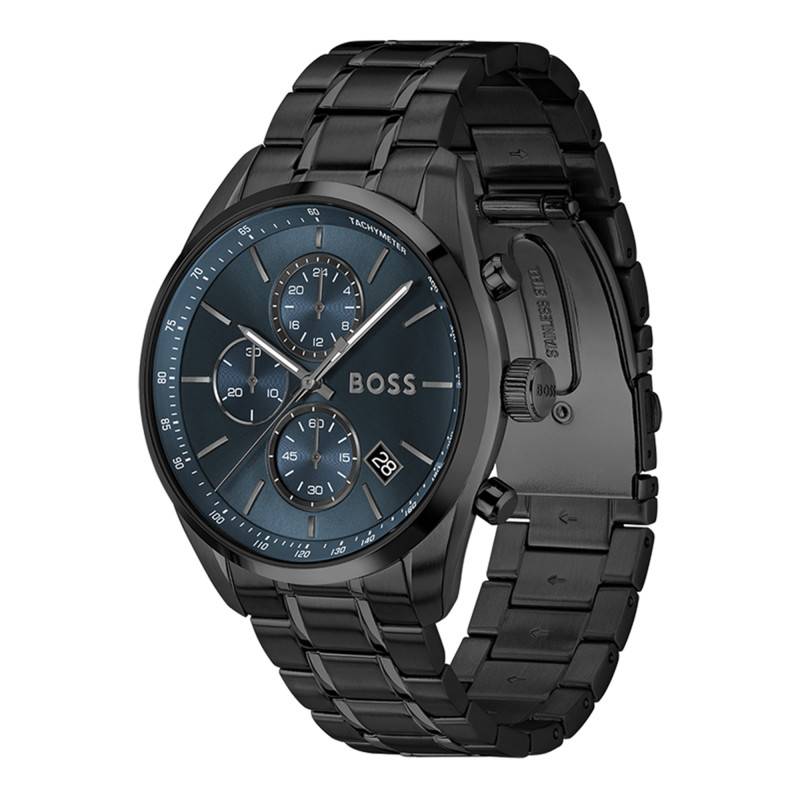 La montre Boss Grand Prix 44 1514314 se distingue par son allure résolument moderne et sportive. Son boîtier de forme tonneau, en acier inoxydable, offre une solidité remarquable tout en étant léger, pesant seulement 150 g. Avec un diamètre de 44 mm et une épaisseur de 11 mm, elle équilibre parfaitement présence au poignet et confort. Le choix du matériau lui confère une robustesse à l'épreuve des chocs quotidiens, tandis que la finition mate apporte une touche d'élégance discrète. Le verre minéral plat protège parfaitement le cadran tout en ajoutant une couche supplémentaire de résistance. Le fond emboîté complète l'ensemble, assurant une belle harmonie esthétique.