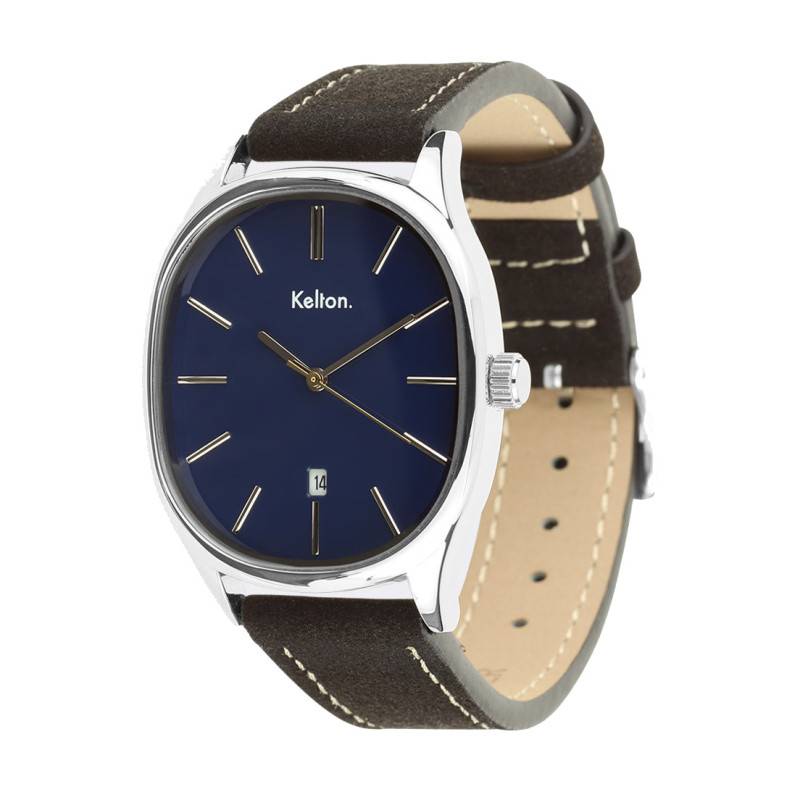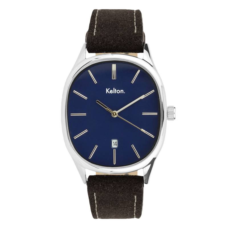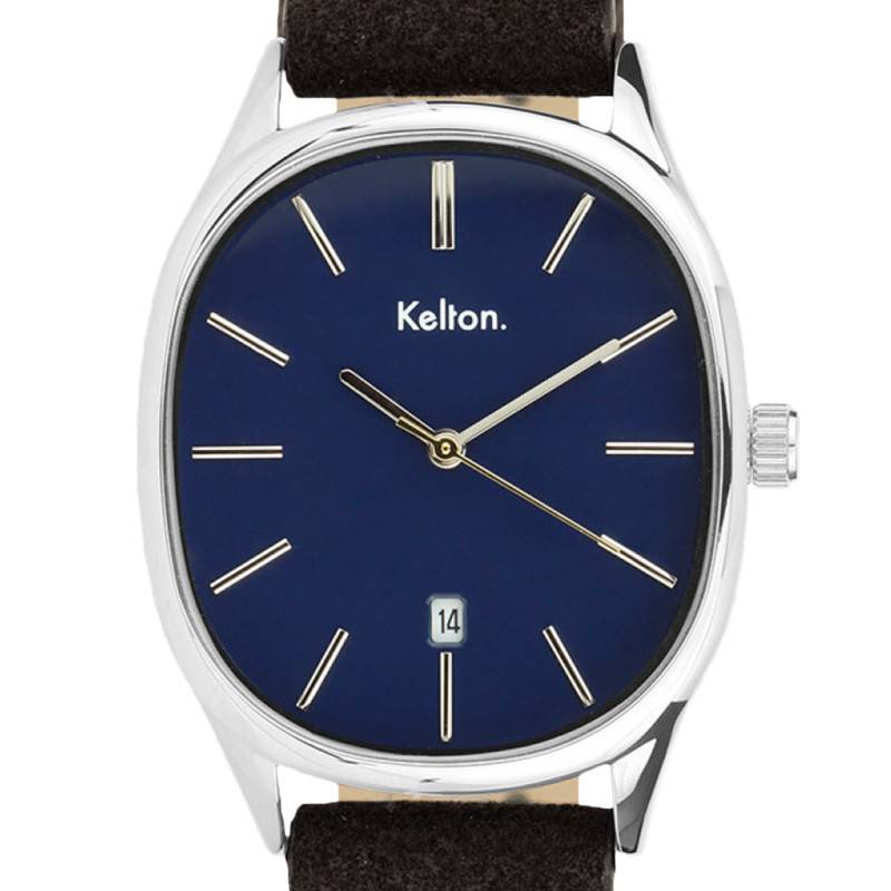Au cœur de ce cadran, sont installées 3 aiguilles argentées. Une petite aiguille qui spécifie les heures, une grande aiguille qui représente quant à elle les minutes, tandis que la plus fine indique les secondes. Sur ce cadran de fond bleu, est logé un guichet date sur un fond blanc à six heures. La couleur bleue de ce dernier donne une note marine et apporte une touche de douceur à ce cadran. Les chiffres arabes classiques ont été remplacés par des index argentés. Kelton signe son garde-temps par son blason apposé à douze heures