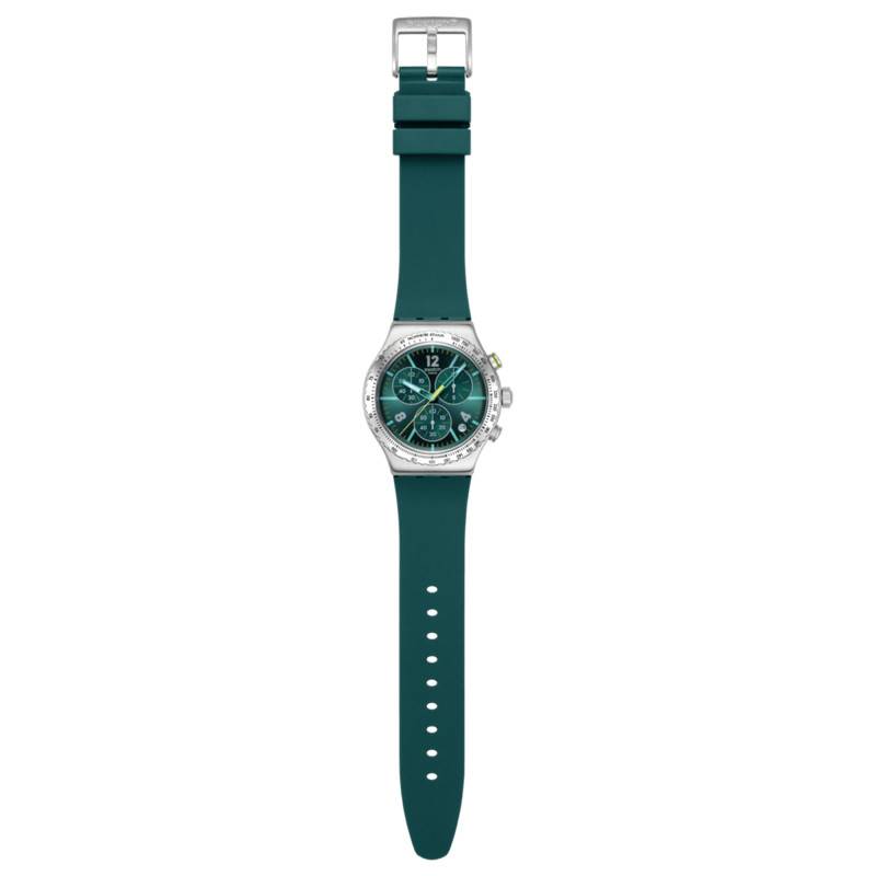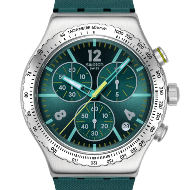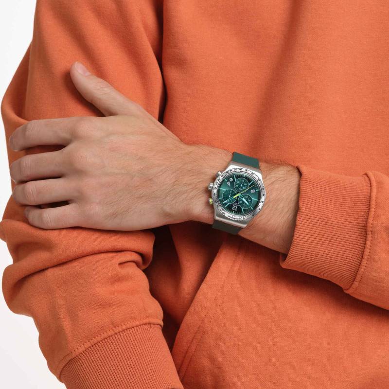 La montre Swatch Greenshift Glow YVS535 arbore un design audacieux et moderne qui captive dès le premier regard. Fabriquée entièrement en acier inoxydable, ses lignes harmonieuses et sa finition polie/brillante se fondent parfaitement dans un boîtier de forme ronde de 43 mm de diamètre. Un poids parfaitement équilibré de 84 g témoigne de la robustesse et de la qualité suisse qui caractérisent cette pièce horlogère. Sa lunette est pourvue d'une échelle tachymétrique, offrant une fonctionnalité précieuse pour les amateurs de vitesse ou les professionnels du chronométrage.