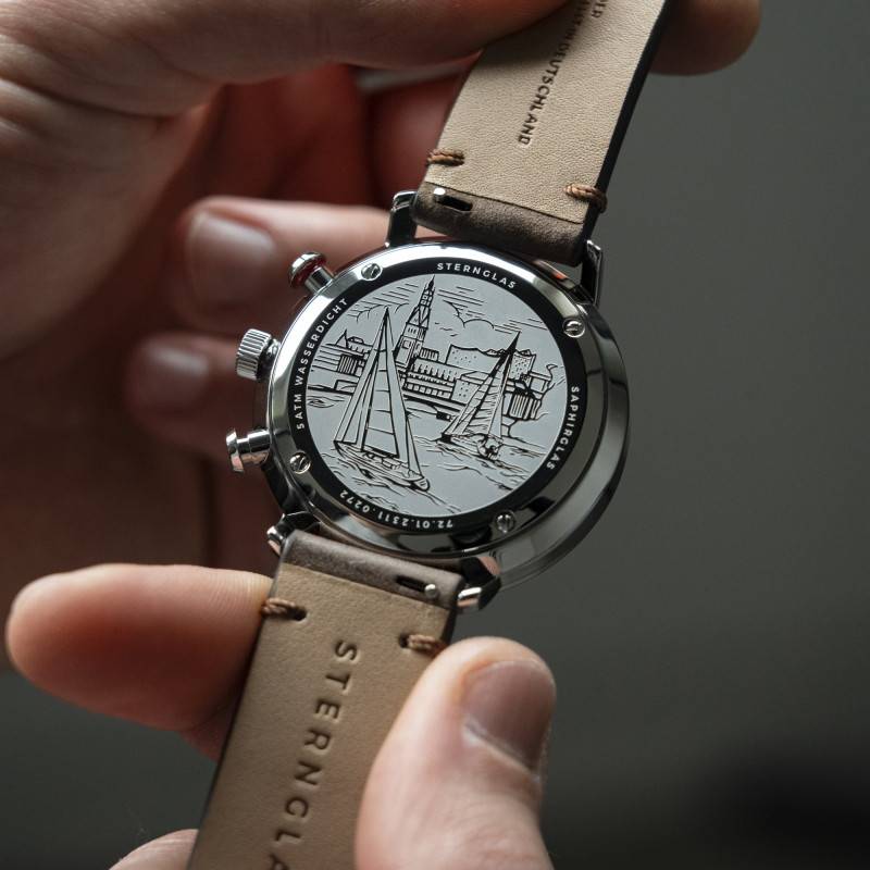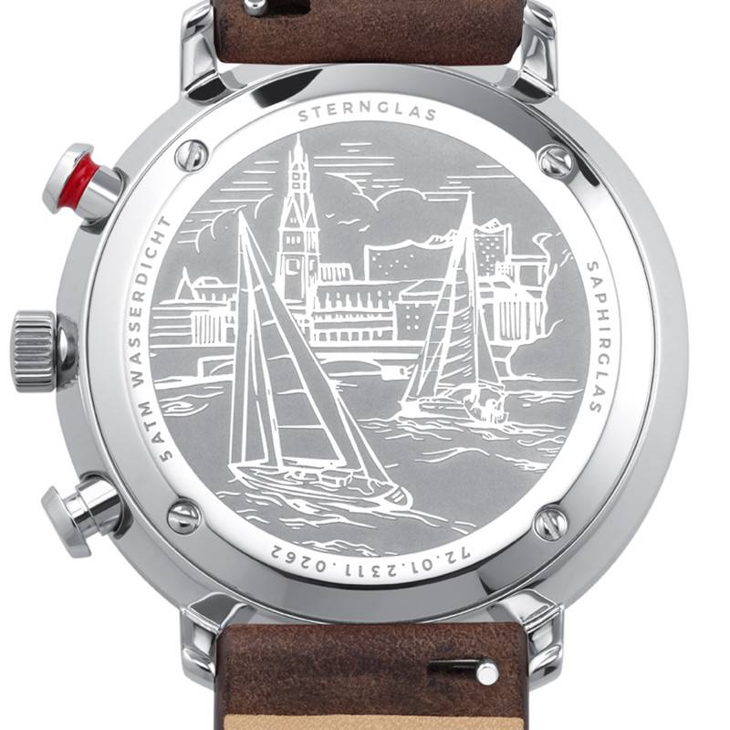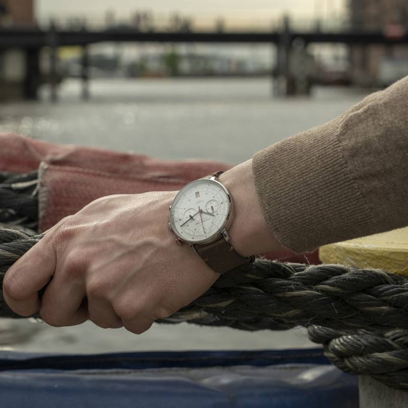 Avec une étanchéité de 5 ATM, la montre Hamburg Chrono Silver est conçue pour résister à des éclaboussures et à des immersions sous l'eau de faible profondeur, comme prévu pour les montres destinées à une utilisation quotidienne. Ces capacités la rendent idéale pour affronter les aléas de la vie active sans compromis sur le style ou la performance.