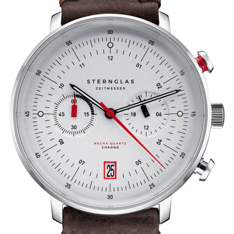 La montre Hamburg Chrono Silver S01-HC10-VI11 de Sternglas est une création élégante destinée aux hommes à la recherche d'une pièce à la fois fonctionnelle et esthétique. Son boîtier rond en acier inoxydable 316L mesure 42 mm de diamètre avec une épaisseur de 9,5 mm, offrant une allure raffinée grâce à sa finition polie et brillante. Ce modèle est fabriqué en Allemagne, garantissant une qualité de construction ainsi qu'une garantie internationale de deux ans.