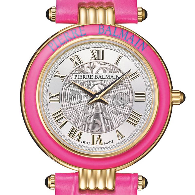 Le cadran de cette montre Balmain est une merveille de sophistication et de style classique. Il affiche des chiffres romains parfaitement alignés, contribuant à une lecture claire du temps. Le fond du cadran est gravé de motifs raffinés qui s'harmonisent avec l'élégance générale du garde-temps. Le chemin de fer des minutes ajoute une précision supplémentaire à son design. Les aiguilles, fines et élégantes, se déplacent avec une fluidité impeccable, exprimant une indication de l'heure et des minutes précises et élégantes.