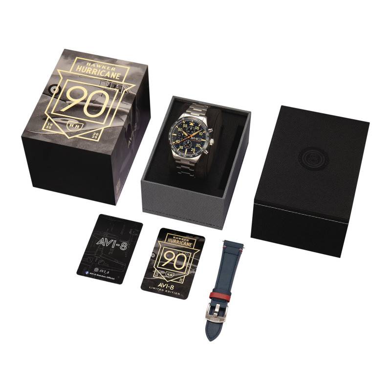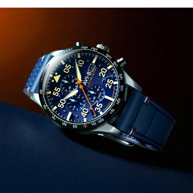 Cette montre Avi-8, modèle Hawker Hurricane 90th Anniversary Chronograph Limited Edition Blue Horizon, incarne l'esprit d'excellence et de résilience associé à l'aviation légendaire. Le choix du boîtier rond en acier inoxydable apporte une protection durable tout en conservant une esthétique raffinée. Avec un diamètre imposant de 45 mm et une épaisseur de 15 mm, cette montre s'affirme résolument sur le poignet, offrant une présence remarquable qui ne passera pas inaperçue. La finition mate brossée/satinée confère une élégance subtile qui capte sans effort la lumière. Ce modèle unique est livré en tant qu'édition limitée, attestant de sa rareté avec seulement 125 exemplaires disponibles, ce qui en fait un objet précieux pour les collectionneurs avertis.