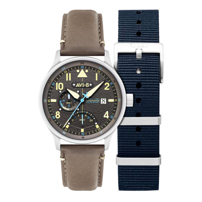 La montre pour homme AVI-8, modèle Hawker Hurricane McKellar Dual Time Ash Grey, se distingue par son design élégant et robuste. Le boîtier est en acier inoxydable avec une finition polie et brillante, ce qui lui confère une allure moderne et sophistiquée. Le boîtier en forme ronde mesure 44 mm de diamètre et présente une épaisseur de 14 mm, offrant une présence imposante au poignet sans compromettre le confort. Le fond de la boite est vissé, garantissant une protection exceptionnelle au mouvement intérieur contre l'humidité et la poussière. Idéale pour les hommes dynamiques, cette montre combine beauté esthétique et fonctionnalité pratique.