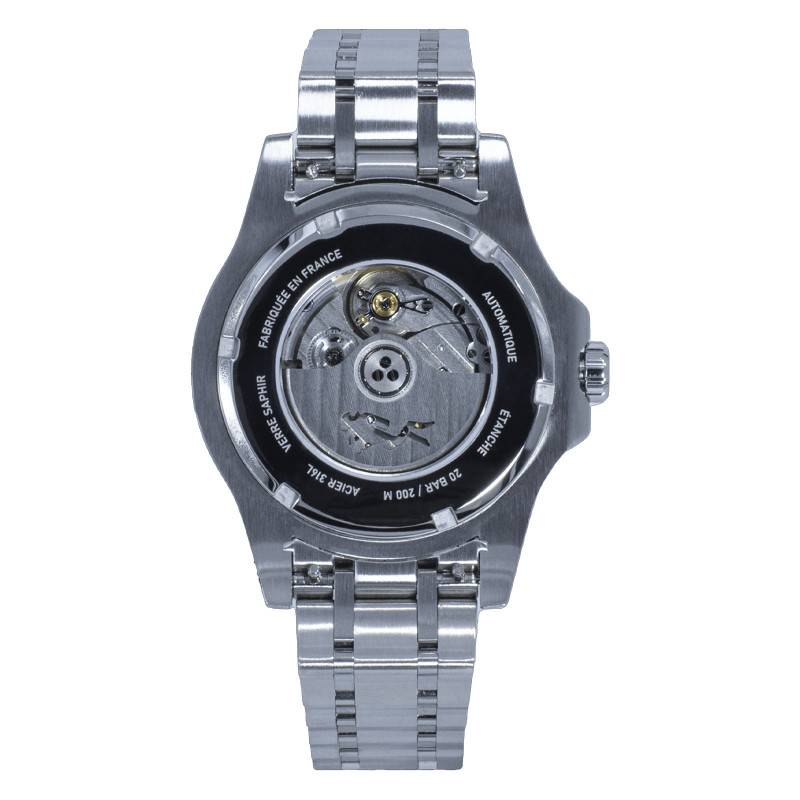 Avec une étanchéité de 20 atmosphères, correspondant à 200 mètres, ce modèle est ce que l'on pourrait qualifier sans crainte de « montre de plongée ». Les experts en horlogerie s'accordent à dire que si ce garde-temps est plus qu'adapté à la douche, au bain, aux sessions de nages sportives, à la plongée en apnée ou la plongée de loisir avec bouteilles, il n'est en aucun cas prévu pour une plongée extrême dans les abysses, où la pression aurait raison de son étanchéité. Pour nos amis plongeurs professionnels qui souhaitent relever des défis de profondeur, nous vous recommandons de vous orienter vers des modèles 30 Atmosphères et plus. Nous vous recommandons également de ne pas manipuler les boutons poussoirs ou la couronne lorsque vous êtes dans l'eau, et ce, pour conserver une parfaite étanchéité !