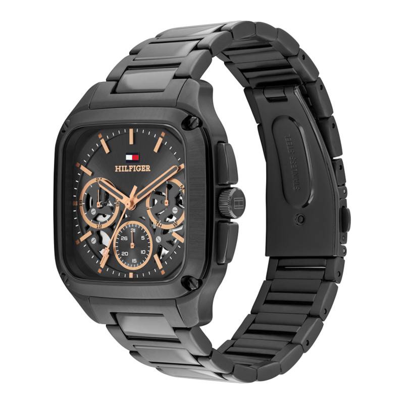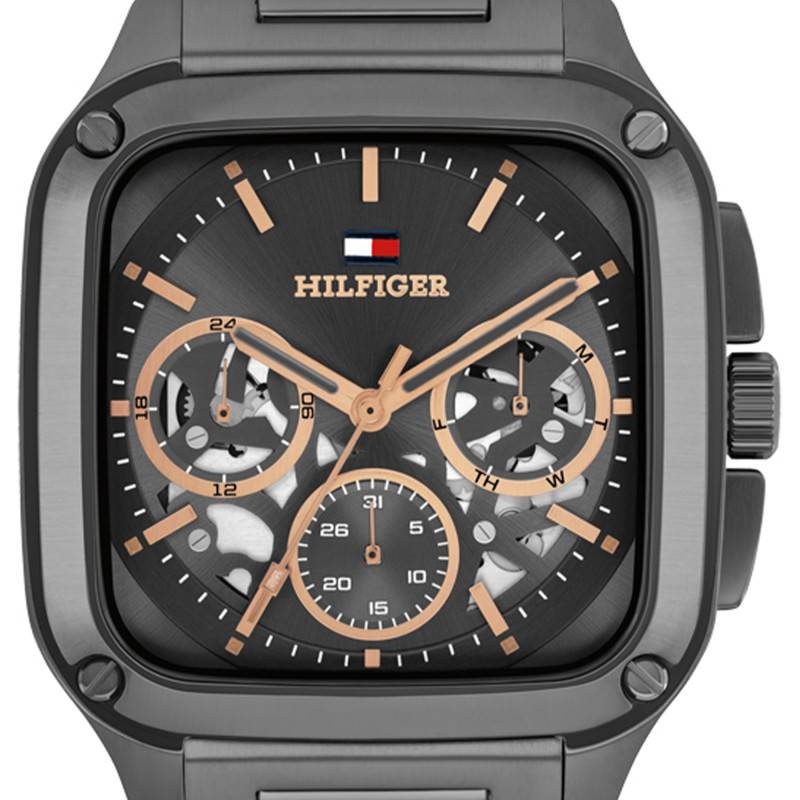 La Montre Herald par Tommy Hilfiger allie élégance contemporaine et robustesse. Composée d'un boîtier rectangulaire en acier inoxydable avec une finition mate brossée, elle incarne une esthétique audacieuse et moderne. Le boîtier pèse 123 grammes, offrant une présence significative au poignet sans être encombrant grâce à une épaisseur de seulement 10 mm et un diamètre de 39 mm. Son aspect géométrique et raffiné est renforcé par une lunette également en acier. La sécurité et la confiance sont assurées par un verre minéral plat qui complète le design bien pensé de cette montre. Avec une étanchéité de 5 ATM, elle sait résister aux éclaboussures du quotidien, ajoutant une dimension pratique à son design raffiné. Le fond de boîte emboîté assure une protection classique et fiable.