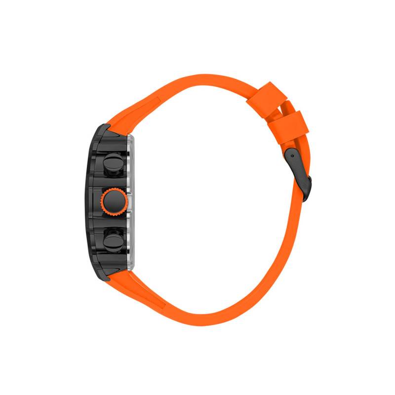 Equipée d'un bracelet en silicone orange éclatant, cette montre affirme un style décontracté et énergique. Le choix de cette matière garantit un confort optimal au quotidien, associant flexibilité et légèreté. Le bracelet se ferme avec une boucle ardillon, simple mais efficace, assurant un ajustement sûr et personnalisé autour du poignet.