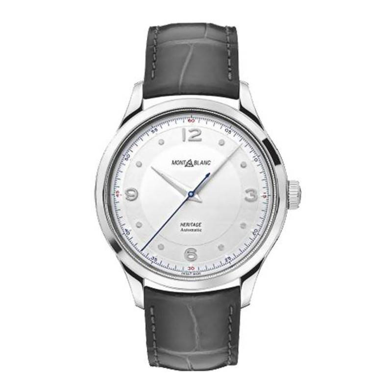 La marque Montblanc présente sa magnifique montre Heritage Automatic qui viendra habiller votre poignet masculin avec élégance. Grâce au savoir-faire des artisans suisses, une telle pièce a pu être créée afin de sublimer votre quotidien. C'est un modèle inspiré des années 1940 et 1950 des montres classiques Minerva. Il sera le mélange entre le charme horloger passé et la technologie d'aujourd'hui avec son design singulier. Ainsi il n'aura pas de mal à être accompagné de toutes sortes de tenues vestimentaires pour vous distinguer. Vous trouverez donc un boîtier en acier inoxydable possédant un diamètre de 40 millimètres et une épaisseur de 11,65 millimètres. Située à trois heures, une couronne remontoir crantée sur laquelle le logo de Montblanc est gravé vous permettra de changer les aiguilles lorsque vous le désirez. Par ailleurs afin de garder le cadran dans un excellent état un verre saphir le recouvrira. C'est un verre inrayable et solide qui en plus se dote d'un traitement antireflet. Le dos emboîté de cette montre sera marquée par la gravure de la manufacture Minerva.