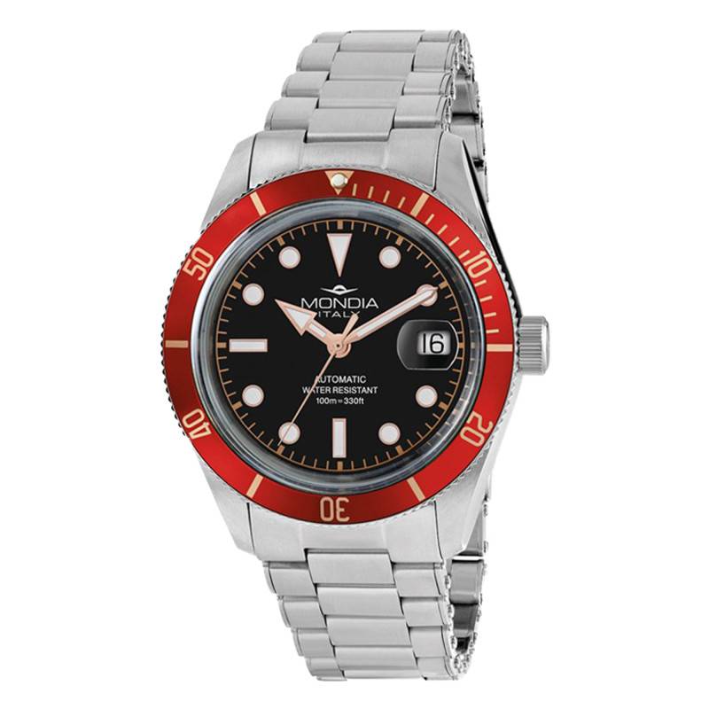 Mondia est une marque horlogère suisse créée en 1935 par Armond Waszme dans la ville de La Chaux-de-Fonds. Elle vise à élaborer des modèles émanant d'un savoir-faire artisanal traditionnel pour leur conférer une technologie innovante. Cette fusion a su révolutionner le domaine tout en gagnant le cœur des hommes et des femmes. À travers sa collection Heritage Diver, elle propose aux hommes d'arborer cette sublime montre MI-821-SRDPR-BK-OY. Celle-ci présente un boîtier rond dûment réalisé en acier inoxydable 316L brossé pour une résistance plus durable face à la corrosion. Arborant une magnifique teinte argentée, il mesure 42 mm de diamètre et 10 mm d'épaisseur qui sont des dimensions pensées pour sublimer avec élégance les poignets masculins. C'est un verre minéral bombé qui recouvre son cadran tout en lui offrant une esthétique solennelle au garde-temps. Il est entouré par une lunette bidirectionnelle possédant un insert rouge qui est marqué par des graduations et un repère luminescent. Le réglage des fonctions centrales se fera à l'aide de la couronne grise crantée et vissée qui octroie une prise en main facile. Bâti pour relever les plus grands défis, ce modèle possède un fond de boîte vissé qui lui garantit une étanchéité de 10 ATM.