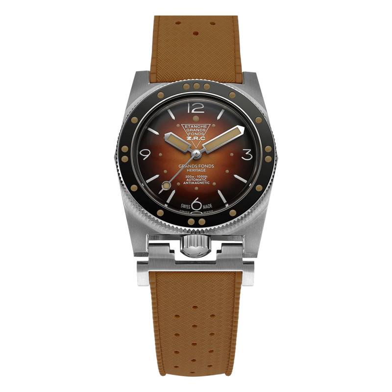 Le bracelet de la montre ZRC Heritage est fabriqué à partir de caoutchouc de couleur marron, offrant une combinaison parfaite entre confort et style. Ce modèle particulier est doté d'une finition gaufrée et microperforée, ce qui ajoute une dimension stylistique unique tout en optimisant la ventilation et le confort lors du port prolongé. Le fermoir boucle ardillon argenté assure un ajustement sécurisé tout en ajoutant une touche d'élégance supplémentaire au design global. Ainsi, ce bracelet n'est pas seulement un complément esthétique, mais aussi un élément essentiel de fonctionnalité, assurant la durabilité et le confort de la montre dans toute situation.