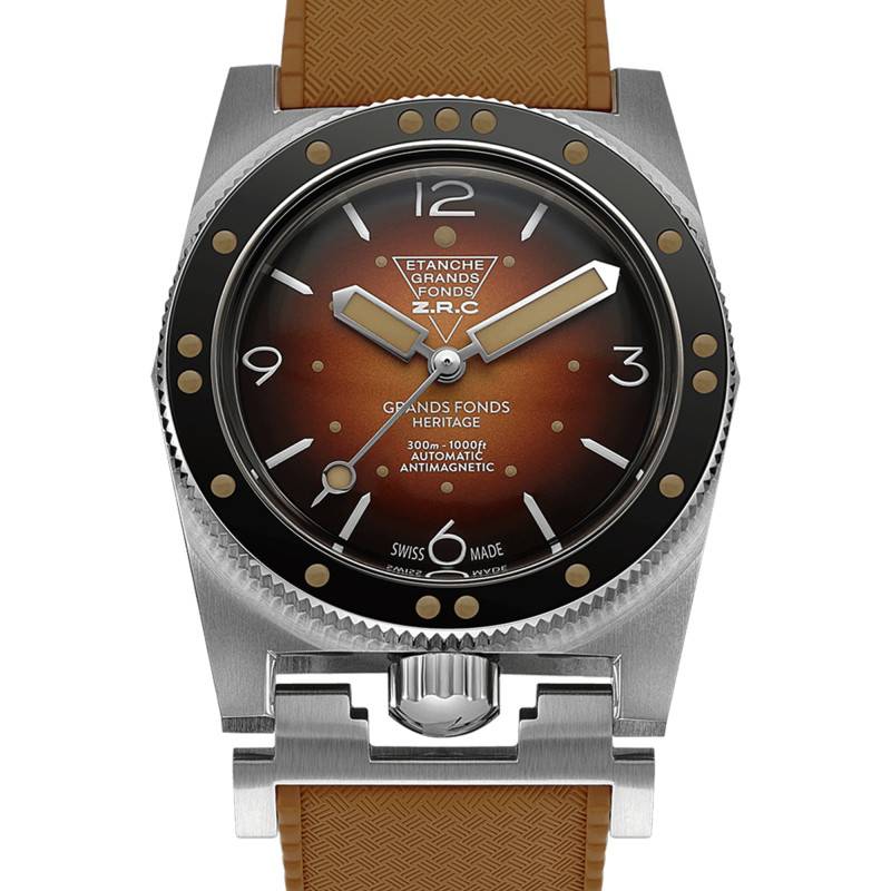 Le cadran de cette montre ZRC Heritage est un chef-d'œuvre de simplicité et d'élégance. Arborant une finition fumée qui évolue subtilement du marron foncé sur les bords au centre plus clair, ce cadran est non seulement visuellement captivant, mais aussi fonctionnel. Les chiffres arabes et les index luminescents garantissent une lisibilité claire même dans des conditions de faible luminosité. Les aiguilles centrales, qui indiquent les heures, les minutes et les secondes, sont également revêtues d'un matériau luminescent, assurant la visibilité dans l'obscurité totale. En plus de la lisibilité, un guichet de date discret mais pratique est positionné sur le cadran pour une fonctionnalité accrue.