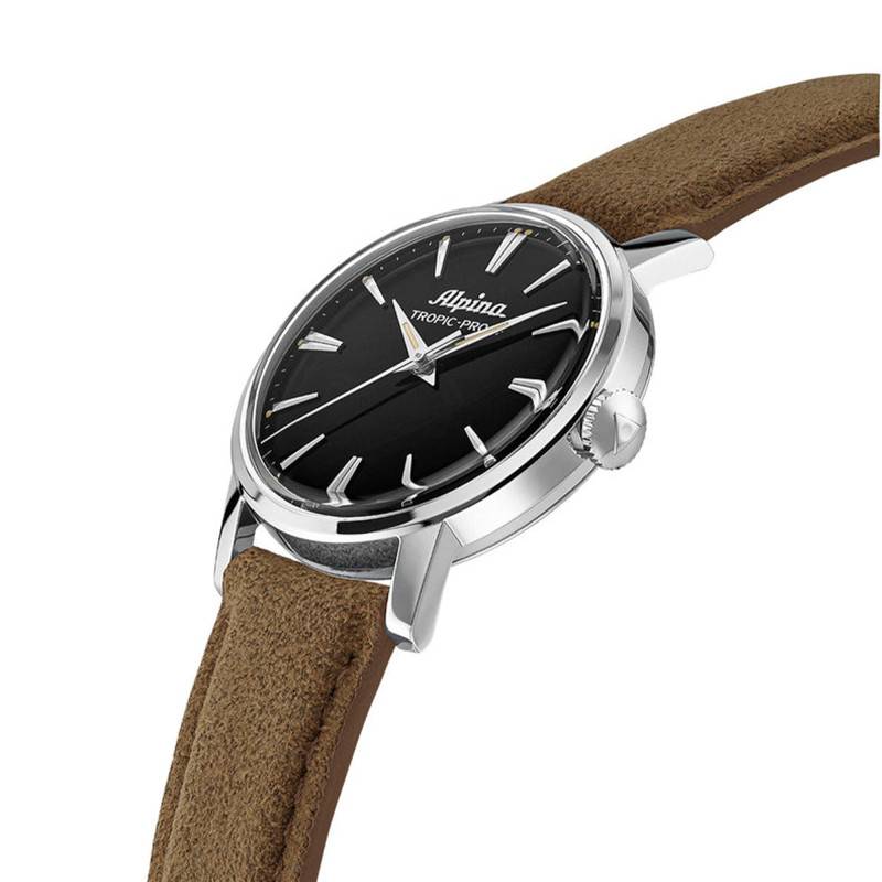 La montre Heritage Tropic-Proof Handwinding par Alpina est un véritable hommage à l'héritage horloger des années 60. Avec son design vintage respectant scrupuleusement le modèle original de 1965, cette montre suisse mêle tradition et raffinement. Le boîtier rond de 34,00 mm arbore une allure élégante grâce à l'utilisation d'acier inoxydable 316L, à la fois poli et brossé pour un look subtil mais distinct. Ce mélange de textures ajoute une dimension de sophistication qui plaira aux amateurs de garde-temps classiques. L'attention au détail se retrouve dans le fond de la montre, conçu avec un fond emboîté, alliant robustesse et discrétion. Son épaisseur de 9,25 mm permet à cette montre de s'insérer parfaitement sous une manchette, en faisant un accessoire idéal pour toutes les occasions.