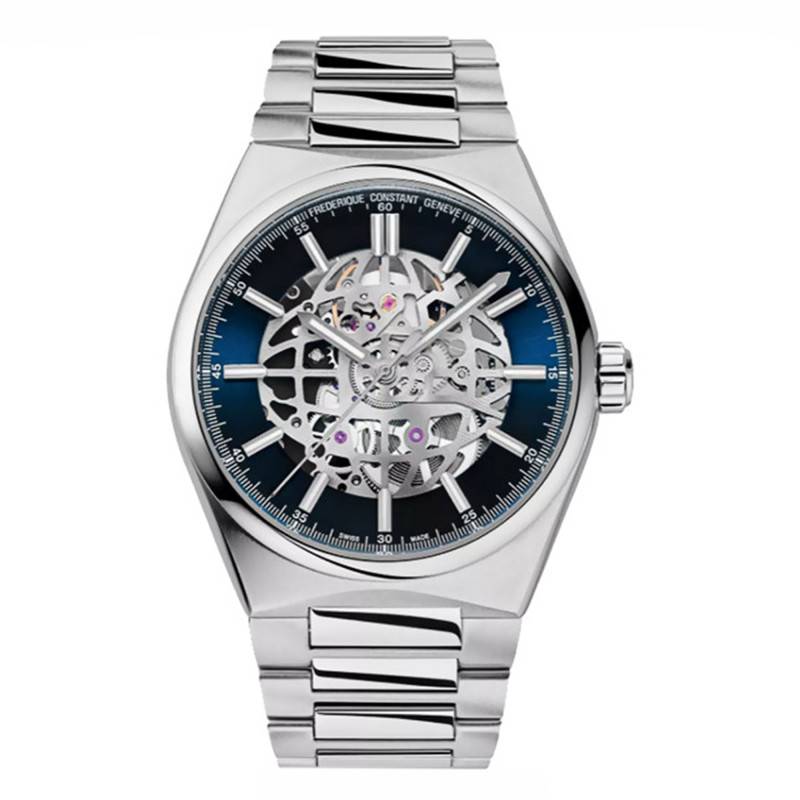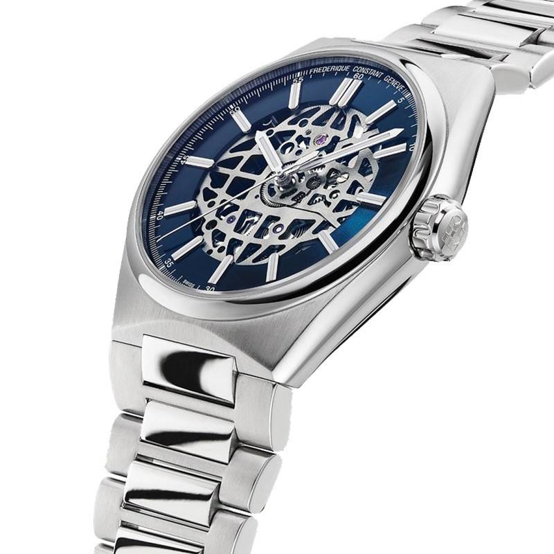 Lancé dans les années 1990, la collection Highlife de la maison Frédérique Constant se caractérise par son bracelet intégré dans le boîtier. Combinant design sportif et allure élégante, ces garde-temps témoignent du savoir-faire exceptionnel de la marque. En constante innovation, la maison suisse fière de son héritage vous dévoile son nouveau modèle Skeleton FC-310NSKT4NH6B en édition limitée qui rejoint la collection Highlife. Celui-ci se compose d'un boîtier de forme tonneau rappelant les montres des années 70'. Conçu en acier inoxydable brossé, il mesure 41 mm de diamètre pour 10.8 mm d'épaisseur. Destiné à la gent masculine, ses dimensions sont idéales pour le quotidien. Par ailleurs, ce dernier est équipé d'une fine lunette en acier poli qui apporte de la lumière. Celle-ci entoure un robuste verre saphir quasiment inrayable qui recouvre le cadran afin de préserver son remarquable design. Doté d'un traitement anti-reflet, il offre une parfaite lisibilité. La traditionnelle couronne remontoir prend place au niveau de 3 heures. De couleur argentée, elle vous permettra d'ajuster l'heure. Par ailleurs, le fond de boîte vous émerveillera par sa finition transparente qui vous permettra d'observer le mécanisme de cette montre. Maintenu par 4 vis, il garantit une étanchéité de 50 mètres de profondeur.
