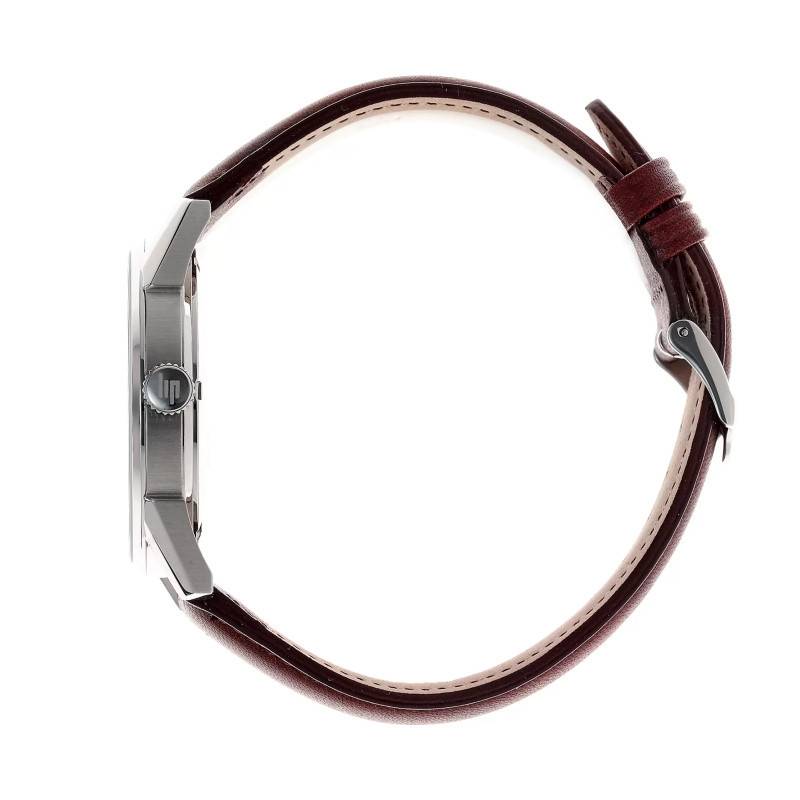 La montre est livrée sur un élégant bracelet en cuir de bovin de couleur marron. On notera la présence de surpiqures ton sur ton ainsi que d'une boucle ardillon de couleur argentée. L'entrecorne de ce modèle est de 20 mm. Il propose une longueur totale jusqu'à 225 mm pour s'adapter à de nombreux poignets.