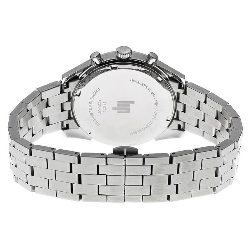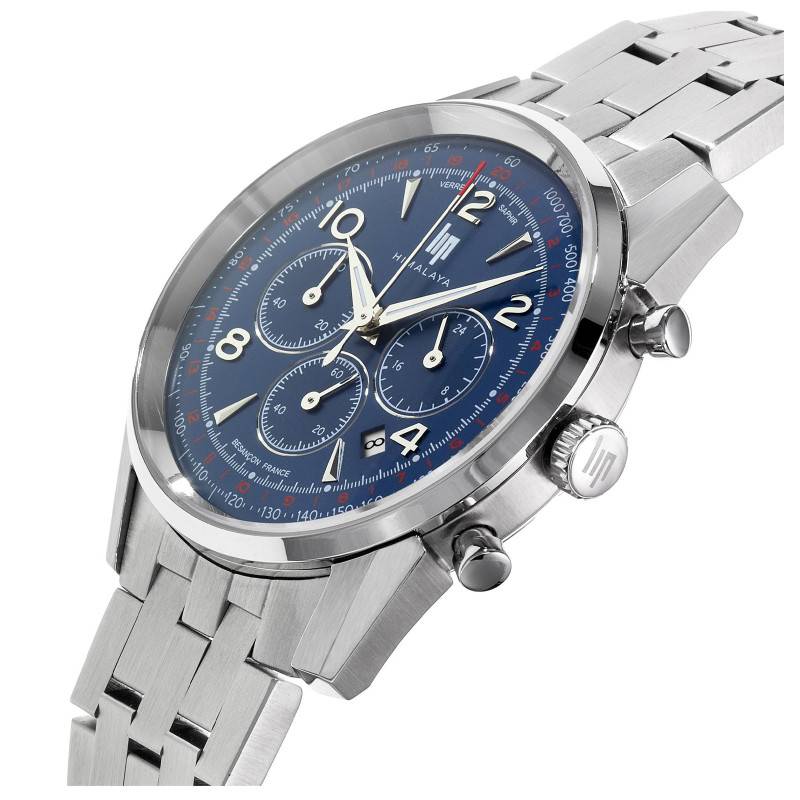 Depuis 1867, la marque Lip s'est imposée dans l'univers horloger à travers des montres magnifiques et sophistiqués. Elle propose des collections innovantes qui répondent en tout point aux exigences de fiabilité et de robustesse. Des lignes soignées aux couleurs sobres, chaque modèle est parfait pour vous accompagner dans vos aventures. En démontre cette magnifique montre Himalaya 40 mm Chronographe 671710 dotée d'un boîtier rond en acier inoxydable 316L poli et brossé de 40,00 mm de diamètre et 12,80 mm d'épaisseur. Ses dimensions le destinent aux hommes raffinés, amoureux de style classique. La couronne crantée à 3 heures ainsi que les deux boutons-poussoirs permettent le réglage des fonctions. Pour finir, son cadran est protégé par un verre saphir bombé et son fond vissé assure une étanchéité de 5 ATM.