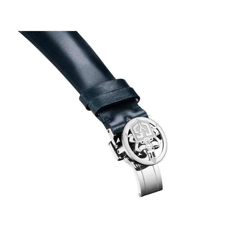 Conçu pour vous offrir un look moderne et élégant, le bracelet qui habille cette montre est fait en cuir de couleur bleue. Il vous transporte directement à Cuba tout en vous offrant un confort optimal. Ce dernier viendra épouser les courbes de votre poignet grâce à sa souplesse et sa flexibilité. Notez qu'il se referme à l'aide d'une boucle déployante en acier, et que son entrecorne mesure 21 millimètres.