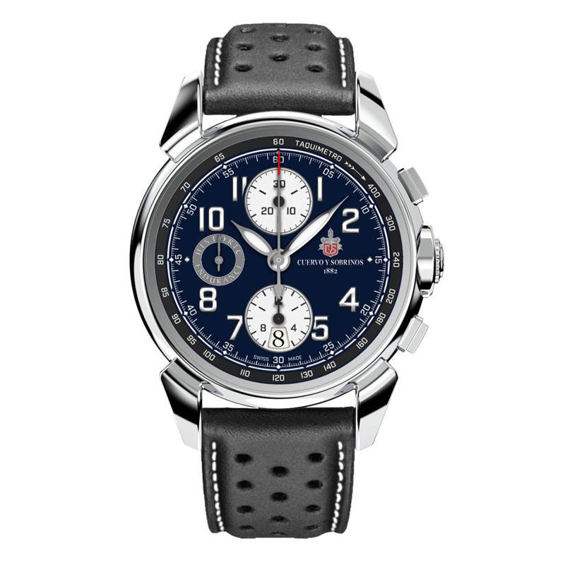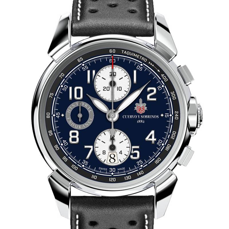 La montre Cuervo y Sobrinos Historic Endurance se présente comme un symbole de l'horlogerie suisse. Le boîtier rond en acier inoxydable poli assure non seulement une grande résistance à l'usure, mais aussi une élégance indéniable. Avec un diamètre de 41 mm et une épaisseur de 15,24 mm, cette montre impose une présence masculine et dynamique au poignet. Le verre utilisé est un verre saphir bombé, bénéficiant d'un traitement antireflet, garantissant ainsi une lisibilité exemplaire et une protection supérieure contre les rayures et les chocs. Ce modèle allie un savoir-faire artisanal unique à une technologie moderne, en étant limité à seulement 76 pièces. Avec son fond de boîte transparent et vissé, la montre offre un aperçu fascinant du mouvement automatique qui la fait fonctionner. Son allure sophistiquée est encore renforcée par la couronne et les deux boutons poussoirs subtilement intégrés, qui permettent une manipulation aisée et élégante des fonctionnalités chronographiques.