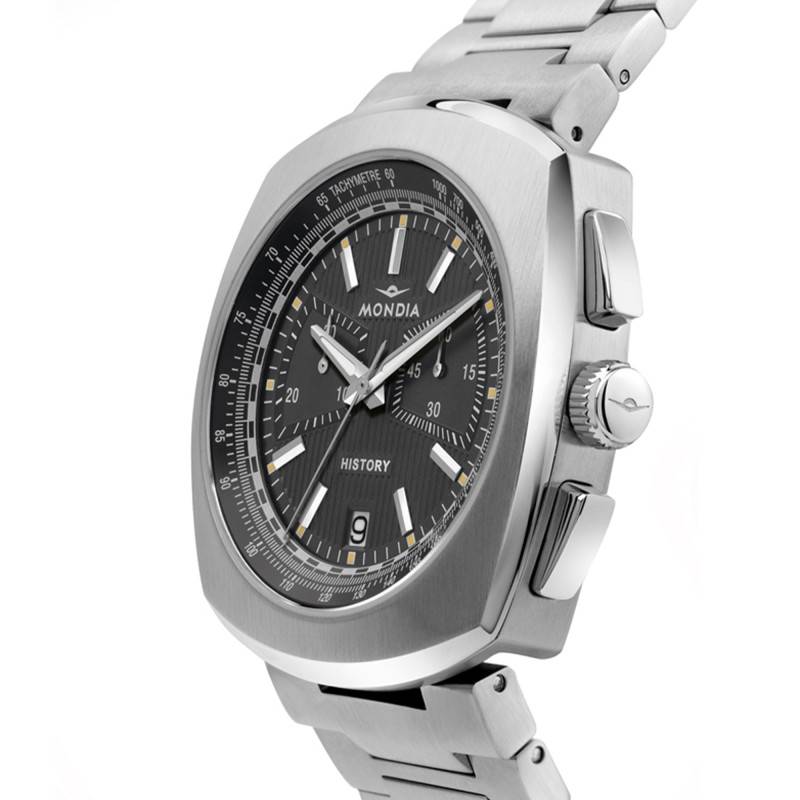 La montre Mondia se distingue par son design audacieux et raffiné. Fabriquée en acier inoxydable, elle épouse une forme unique en coussin qui capte l'œil par son élégance singulière. Ses dimensions parfaitement étudiées de 40 mm de longueur autant que de largeur, associées à une épaisseur de 14 mm, offrent une présence subtile mais imposante sur le poignet. La finition de l'ensemble, un mélange harmonieux de surfaces brossées et satinées, confère à ce garde-temps une allure résolument moderne. Dotée d'un verre saphir, la montre promet une résistance exceptionnelle aux rayures quotidiennes, préservant ainsi l'éclat du cristal transparent au fil des années.