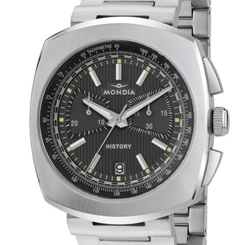 Le cadran de cette montre Mondia attire l'attention par sa finition guillochée précise, ajoutant une dimension de profondeur et de texture au fond noir classique. En son centre, se déploient des chiffres arabes clairs et contrastés, épaulés par des index appliqués qui naviguent sur un délicat chemin de fer des minutes. Les aiguilles, d'une conception robuste et raffinée, sont dotées d'une matière luminescente qui rayonne une douce lueur dans l'obscurité, rendant l'heure visible même dans les conditions les plus sombres. Le guichet date, ingénieusement intégré, ajoute une fonctionnalité discrète mais essentielle, positionné de façon ergonomique pour une lecture instantanée.