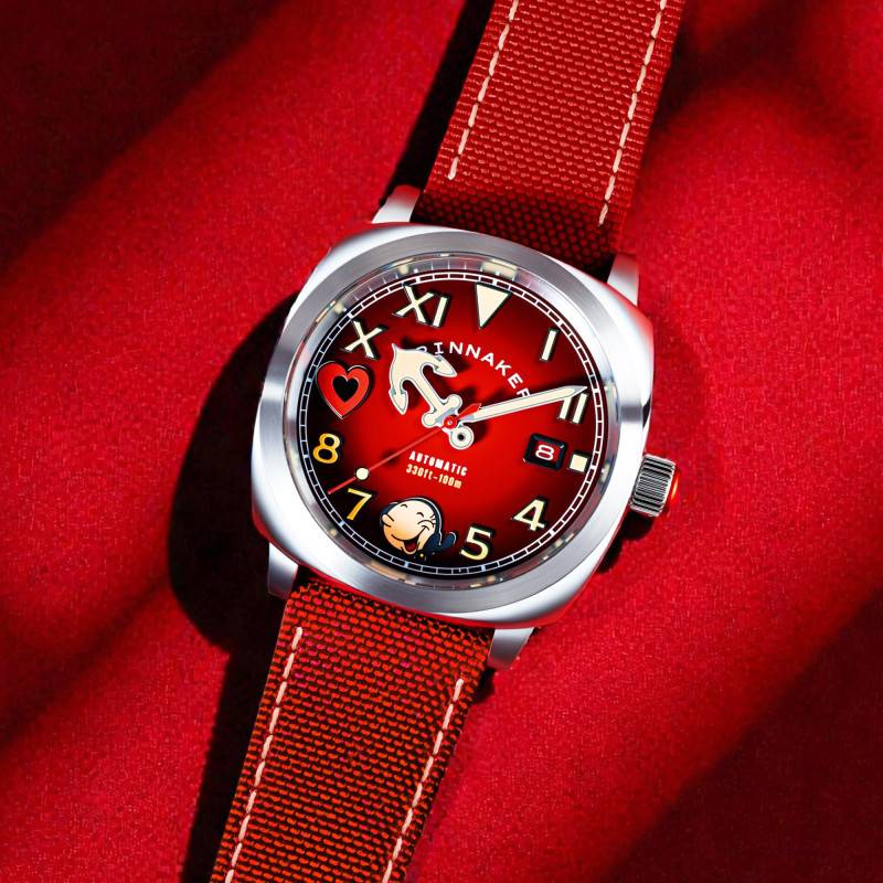 La Hull California Automatic Popeye Sailors and Sweethearts Limited Edition par Spinnaker est une pièce emblématique, alliant charme vintage et technologie moderne. Conçu pour l'homme d'aventure, ce garde-temps arbore un boîtier en acier inoxydable 316L réputé pour sa résistance et sa durabilité. Sa forme coussin ajoute une touche rétro, tandis que son diamètre de 42 mm, associé à une épaisseur de 15,50 mm, assure une présence imposante au poignet. Le fond de la montre transparent et vissé offre une vue imprenable sur le mouvement interne, un hommage à la précision mécanique. Ce modèle est une édition limitée à 300 exemplaires, renforçant son statut de pièce de collection recherchée parmi les amateurs d'horlogerie.