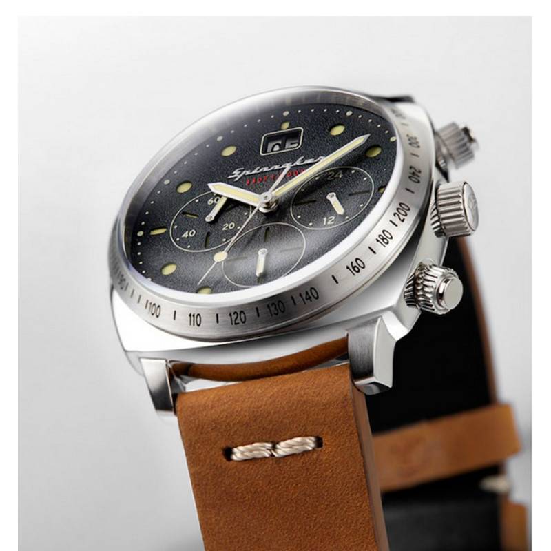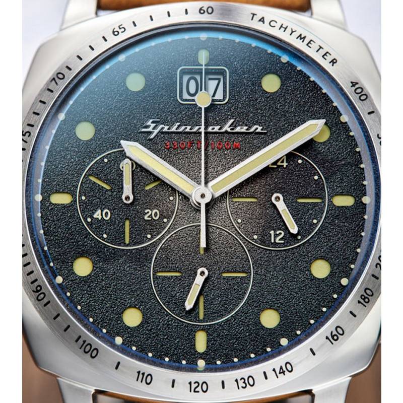 Découvrez la nouvelle collection de montres Hull Chrono de la maison horlogère Spinnaker. Elle s'est inspirée de codes nautiques et vintages pour élaborer des montres très soignées qui apporteront de l'élégance au poignet. Le modèle SP-5068-01 dispose d'un boîtier en acier inoxydable de 42mm de diamètre. Une lunette interne vient se positionner sur ce boîtier. Sur cette dernière vous pourrez apercevoir un tachymètre qui montrera sa praticité au quotidien. De plus, vous observerez la présence de trois couronnes remontoirs à deux, trois et quatre heures pour régler l'heure ainsi que les compteurs. Pour protéger ce précieux boîtier contre divers dégâts un verre minéral viendra prendre place pour le recouvrir. Enfin le fond de boîtier vissé donnera une étanchéité de 10 ATM.