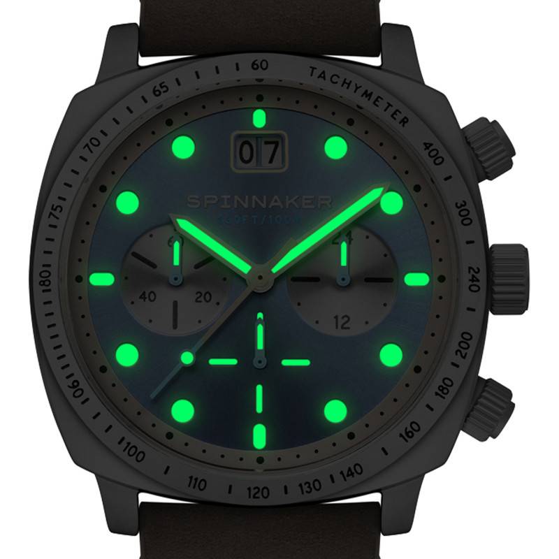 La célèbre marque Spinnaker s'est imposée dans l'univers horloger à travers ses modèles uniques qui allient sophistication et fonctionnalité. Depuis plus de 30 ans, elle conçoit des montres inspirées des grands navigateurs qui se destinent à sublimer vos tenues. En démontre ce superbe garde-temps Hull Chronograph SP-5068-04 qui fait preuve d'une élégance et d'une esthétique unique. Son boîtier de forme coussin est conçu en acier inoxydable de couleur argentée et de finition polie. Avec une largeur de 42 mm, une épaisseur de 15 mm et une longueur de 48 mm, il sera parfait pour épouser les courbes des poignets masculins. Il intègre une lunette tachymétrique de teinte argentée qui sert à mesurer la vitesse de déplacement d'objets en mouvement. Cette dernière entoure le verre minéral bombé qui recouvre le cadran. Son traitement antireflet permet une lisibilité optimale des indicateurs et à droite de la carrure, se placent une couronne crantée et deux boutons-poussoir qui serviront au réglage des fonctions. Enfin, le fond de boîte vissé assure une étanchéité de 10 ATM.