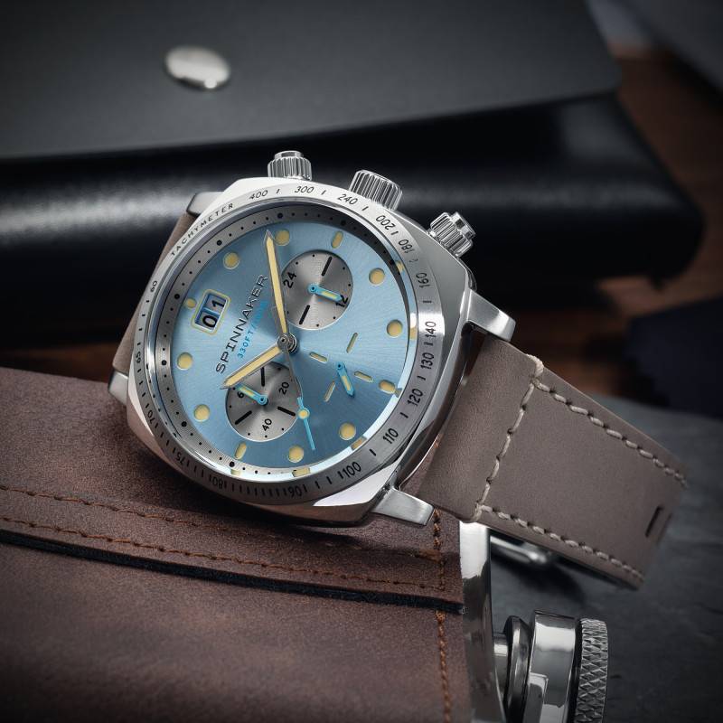 À la fois lumineux et moderne, ce cadran accentue le charme de la montre. Il captive par ses finitions brossées et soleillées qui lui confèrent de l'originalité. Son fond bleu ciel favorise une lecture claire des indicateurs. Ces derniers sont traités au Super-Luminova pour une lisibilité même dans l'obscurité. Il s'agit des index de formes rondes et ovales qui marquent les heures ainsi que les deux aiguilles glaive des heures et des minutes ainsi que la trotteuse des secondes du chronographe. Les trois compteurs placés à 3, 6 et 9 heures sont également luminescents. Ils indiquent respectivement les 24 heures, les petites secondes et les 60 minutes. Un guichet grande date prend place à 12 h pour définir le quantième du jour. Le pourtour accueille un chemin de fer des minutes pour plus de précision. Pour finir, la marque appose son nom à midi en guise de signature.