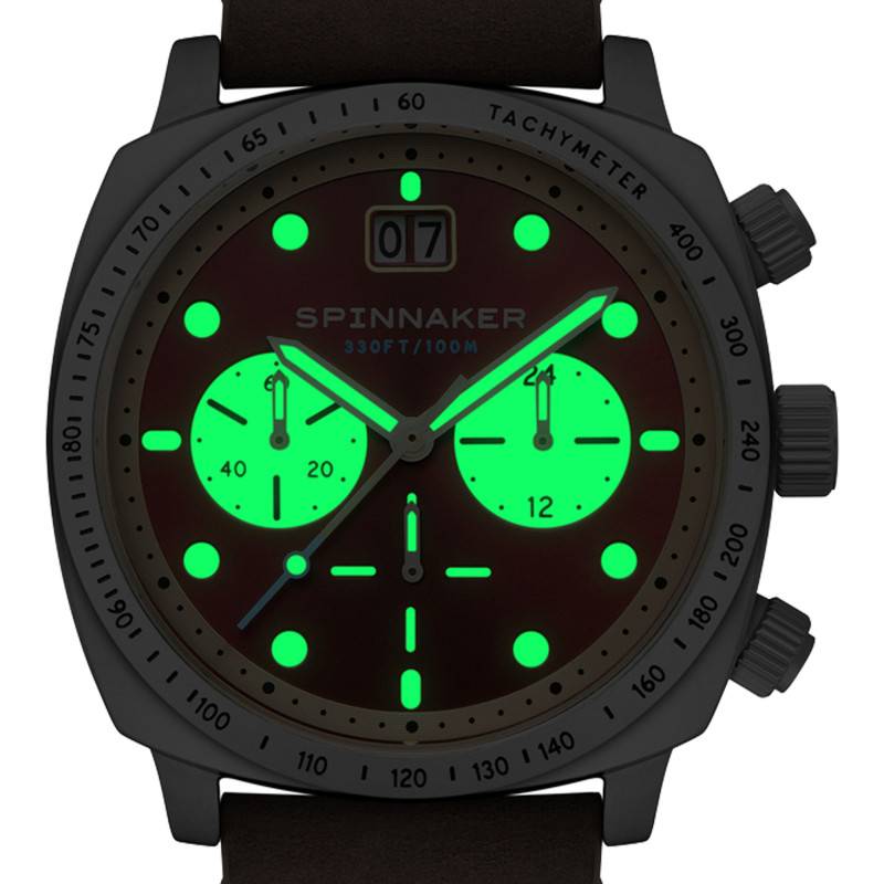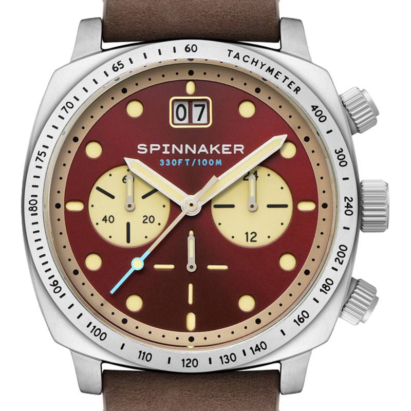 Spinnaker est une marque horlogère anglaise qui se distingue par son excellence, son savoir-faire et sa technicité exceptionnelle. Entre précision et innovation, ses modèles incarnent parfaitement ses valeurs et s'imposent par leurs designs racés. C'est le cas de cette belle montre Hull Chronograph SP-5068-05 qui combine look vintage et fonctionnalités pour sublimer les poignets masculins. Son boîtier de forme coussin est fabriqué en acier inoxydable de couleur argentée et de finitions polie et brossée. Il affiche 42 mm de diamètre pour une épaisseur de 15 mm et une longueur de 48 mm. Il intègre également une lunette tachymétrique afin de mesurer votre vitesse moyenne sur une distance donnée et sur sa droite, se profilent deux boutons-poussoir et une couronne crantée qui se place à 3 heures. Ils ont en charge le réglage des fonctions de la montre. Pour finir, le fond de boîte vissé garantit une étanchéité de 10 ATM et sa surface est recouverte par un verre minéral bombé de traitement antireflet qui vous assurera une lisibilité optimale des indicateurs centraux sous tous les angles de vue.