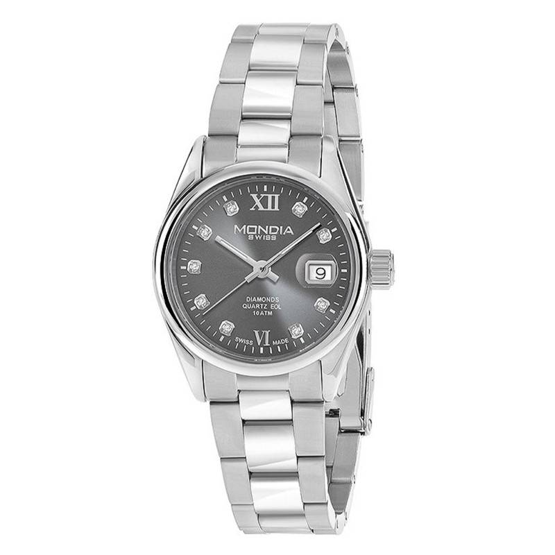 La montre Mondia Icon Legend Lady Diamonds est une démonstration de l'élégance suisse, réunissant sophistication et rigueur horlogère. Nichée dans un boîtier rond de 30 mm de diamètre, cette montre se démarque par l'utilisation de l'acier inoxydable 316L, un matériau reconnu pour sa résistance à la corrosion et sa robustesse. Cette montre, avec son épaisseur modérée de 8 mm, assure un confort inégalé tout en restant discrète sur le poignet, idéale pour un port quotidien sans heurts. Le boîtier, orné d'une finition polie, reflète un éclat subtil qui capte la lumière avec brio.