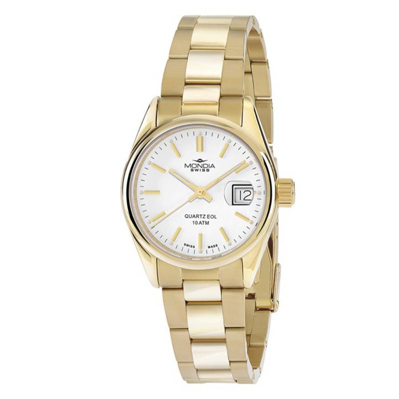 La montre Mondia se distingue par son allure élégante et sophistiquée, confectionnée avec une attention méticuleuse aux détails en utilisant des matériaux de qualité supérieure. Le boîtier de cette montre pour femmes est fabriqué en acier inoxydable 316L de haute qualité, connu pour sa durabilité et sa résistance à la corrosion. Ce boîtier, parfaitement rond, affiche un design épuré avec un diamètre de 30 mm et une épaisseur de 8 mm, offrant un profil délicat mais notable sur le poignet. Sa finition en PVD jaune, brillamment polie, ajoute une touche de luxe sans être ostentatoire. Ce garde-temps est doté d'une couronne vissée permettant de garantir une meilleure étanchéité, tandis que le fond de boîte vissé assure non seulement la protection du mécanisme interne mais contribue également à la robustesse générale de la montre.