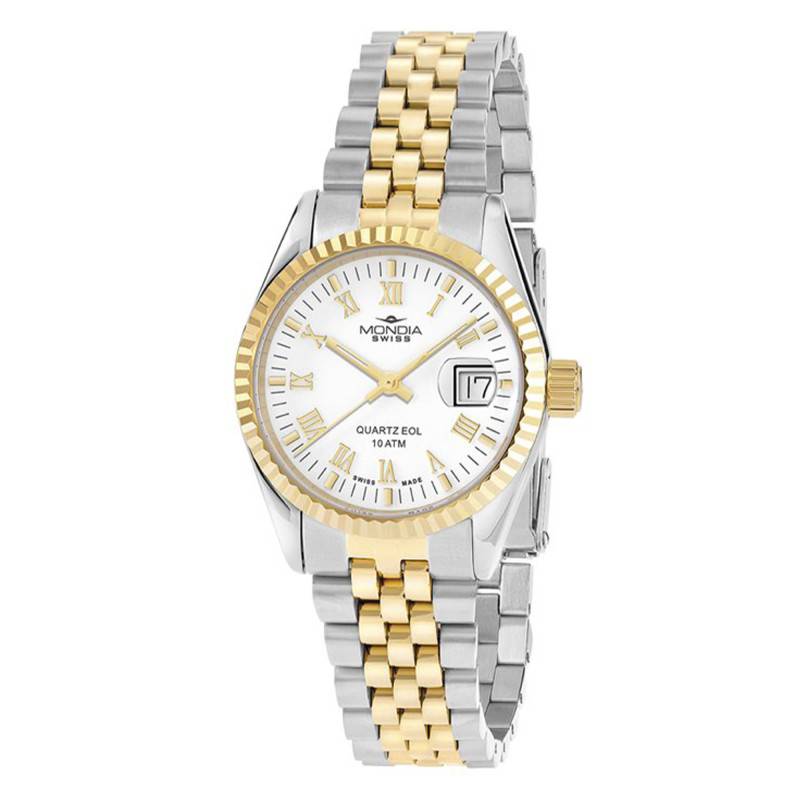 La montre que nous vous présentons incarne le raffinement et l'élégance, synonymes de la marque Mondia. Conçue pour les dames, elle se distingue par son boîtier en acier inoxydable 316L, un matériau renommé pour sa robustesse et sa résistance à la corrosion. Le boîtier présente une forme ronde classique avec un diamètre mesuré de 30 mm, parfait pour envelopper délicatement le poignet féminin. Avec une épaisseur de 8 mm, elle arbore une silhouette fine et légère, accentuée par une lunette à effet cannelé qui ajoute une touche de sophistication au design. Fabriquée en Suisse, elle incarne un savoir-faire horloger d'exception, garantissant non seulement un style irréprochable mais aussi une qualité durable. Le fond vissé de la montre renforce son intégrité structurelle, assurant une protection optimale du mécanisme interne contre les éléments extérieurs.