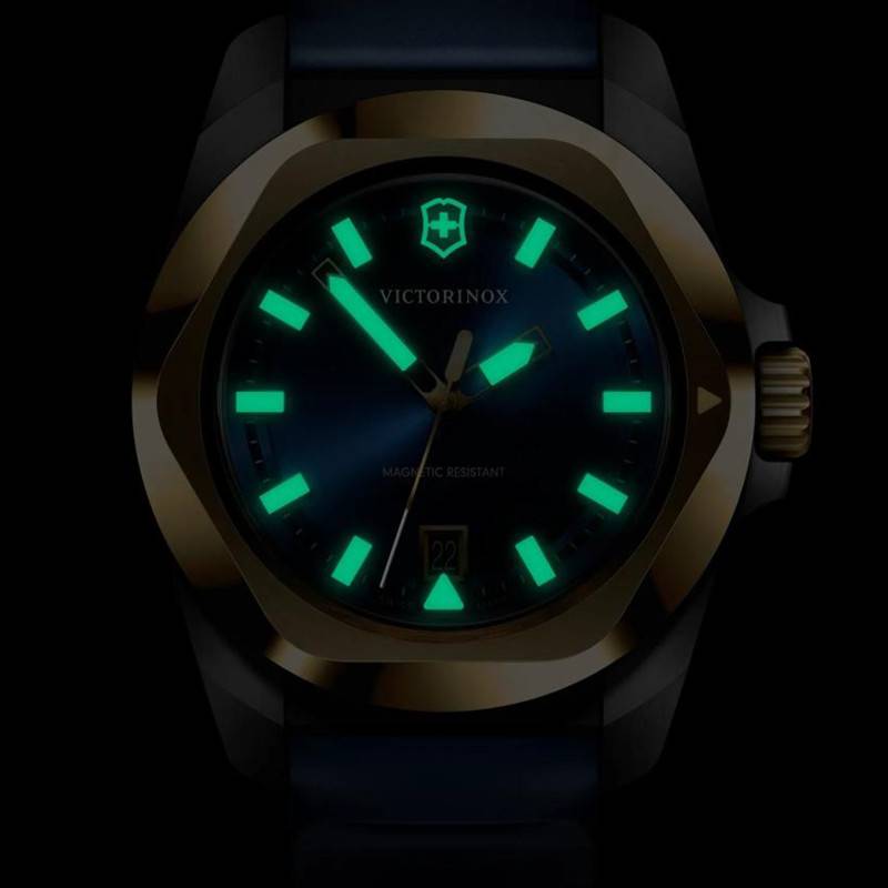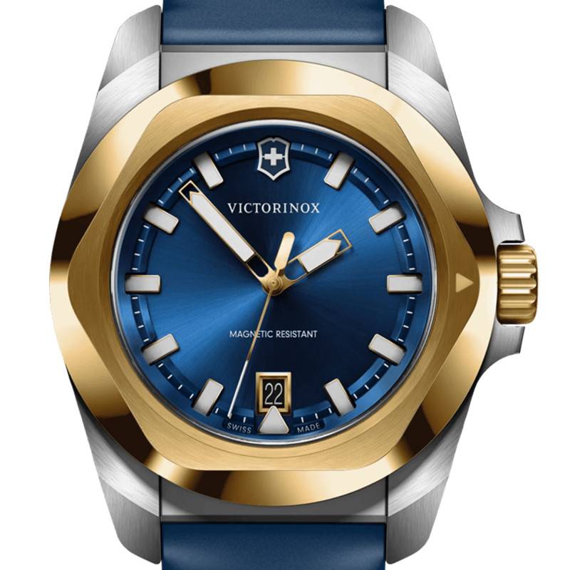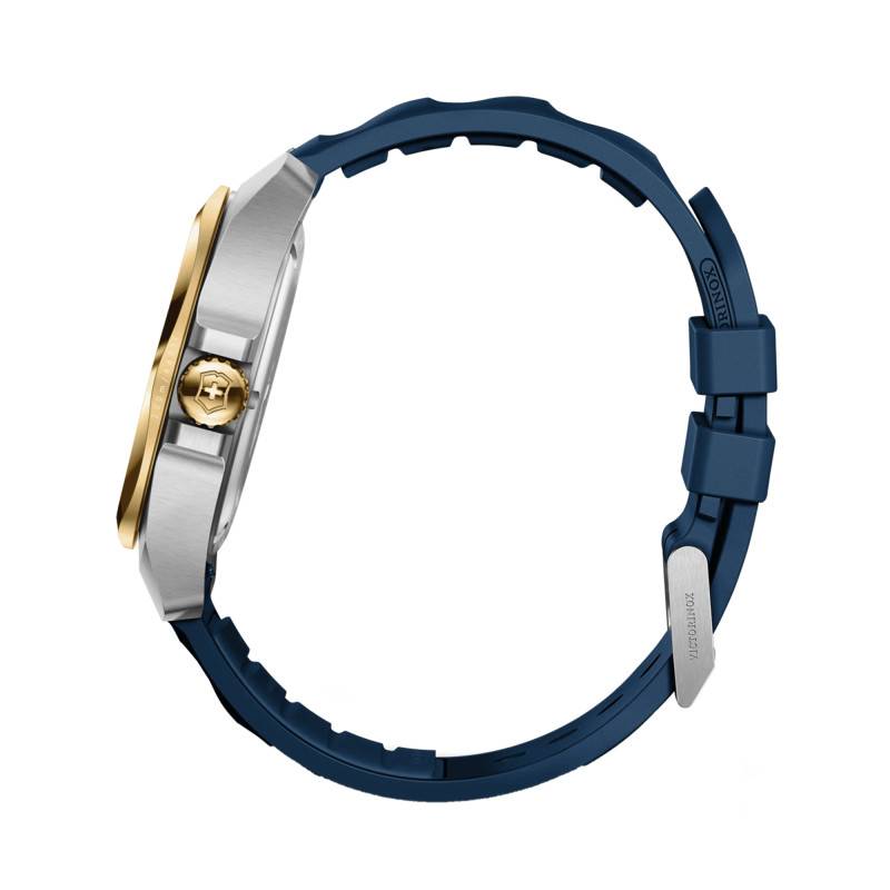 La montre I.N.O.X. Quartz 41 mm de Victorinox est une fusion parfaite d'élégance et de robustesse. Conçue pour les hommes modernes, elle est dotée d'un boîtier rond en acier inoxydable 316 L. Le boîtier mesure 41 mm de diamètre pour une épaisseur de11,25 mm, ce qui garantit une présence imposante sans être ostentatoire. Il affiche une finition à la fois mate et polie, avec un traitement PVD jaune qui ajoute une touche de sophistication. La montre pèse 108 grammes, assurant un confort indéniable au poignet. Le verre saphir, connu pour sa dureté exceptionnelle et son traitement antireflets, achève de sublimer l'ensemble tout en assurant une protection optimale.