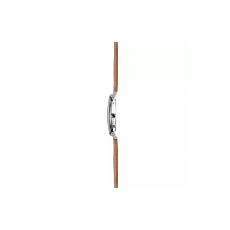 Le bracelet en cuir marron possède une entrecorne de 20mm et se ferme à l'aide d'une boucle ardillon.