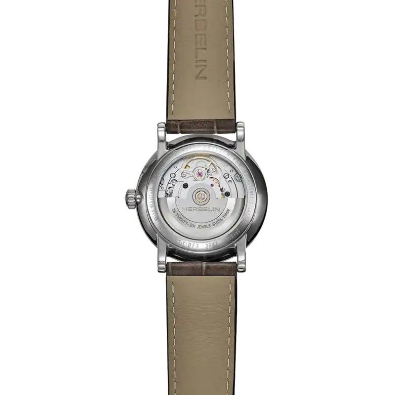 La montre Herbelin Inspiration Automatique est un exemple séduisant d'expertise horlogère. Fabriquée en France, elle combine authenticité et innovation. Le boîtier rond en acier inoxydable 316L assure une durabilité sans faille, tandis que sa finition polie offre une brillance captivante. L'ensemble du boîtier est polyvalent avec ses 38 mm de diamètre, offrant un port confortable au poignet. Le fond emboîté et transparent de la montre révèle le mouvement mécanique, ajoutant une dimension captivante et unique à cet ensemble déjà impressionnant. Renforcé avec un verre saphir plat, le cadran est protégé contre les rayures, garantissant la pérennité de la vue impeccable sur ses détails complexes.