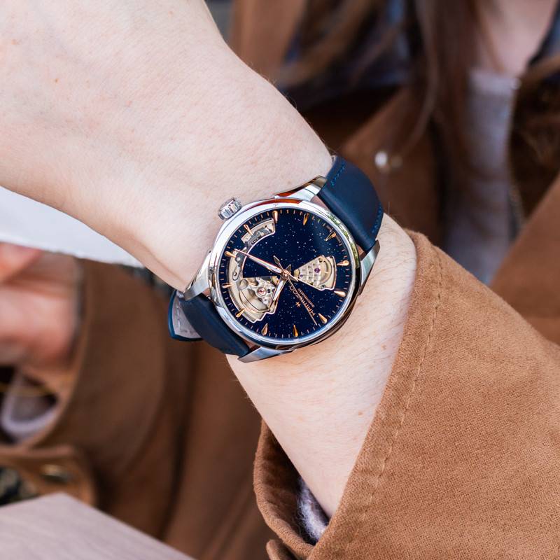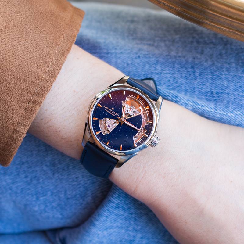Depuis sa création, Hamilton incarne l'esprit de l'innovation horlogère, alliant précision, design et performance. La marque s'est rapidement imposée comme une référence incontournable dans le milieu de l'horlogerie. Les garde-temps Hamilton se distinguent par leur robustesse, leur élégance intemporelle et leur capacité à traverser les époques avec style. Aujourd'hui, la maison vous présente la montre Jazzmaster Open Heart Auto 36mm H32215642, un modèle destiné aux poignets des femmes. Elle se pare d'un boîtier rond fabriqué en acier inoxydable brossé et poli, ce qui lui confère cette touche captivante. Ce dernier affiche 36 mm de diamètre pour une épaisseur de 10 mm. À 3 heures, il révèle une couronne grise garantissant la manipulation des aiguilles. Cette dernière est argentée et arbore la lettre H en relief rappelant le logo de la marque et une finition crantée qui facilite sa prise en main. À la surface, un verre saphir plat surmonte le cadran afin de le protéger des chocs éventuels et grâce à son traitement antireflet, il garantit une lisibilité sans gêne. Cette montre est fermée par un fond de boîte vissé assurant une étanchéité de 5 ATM. Ce dernier est gravé et se pare d'une ouverture transparente permettant d'apprécier les oscillations du mouvement.