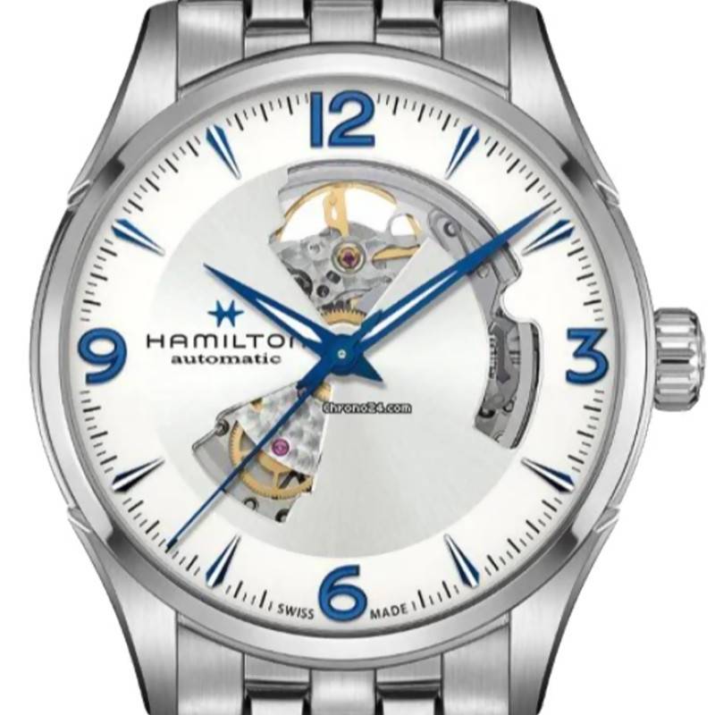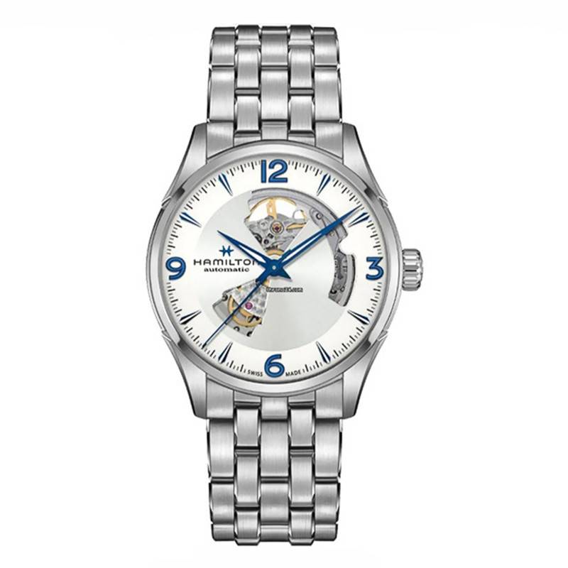 Cette montre Swiss Made pour homme, au boîtier de 42 millimètres de diamètres, a été conçue par la maison Hamilton reconnue pour la qualité de ses techniques horlogères, pour ses mouvements automatiques suisses et son sens du design. Ce modèle Jazzmaster "Open Heart" Auto H32705152 fait écho à l'univers rétro américain. Le boîtier est constitué d'acier inoxydable argenté et brossé. Il est finement biseauté à divers endroits, qui se voient alors appliquer une somptueuse finition polie. Un verre saphir, très robuste et résistant aux rayures, vient protéger le cadran analogique à cœur ouvert. La lunette fixe qui l'entoure se veut mince et discrète. Une couronne crantée placée à 3h vous sert pour régler les 3 aiguilles du cadran.