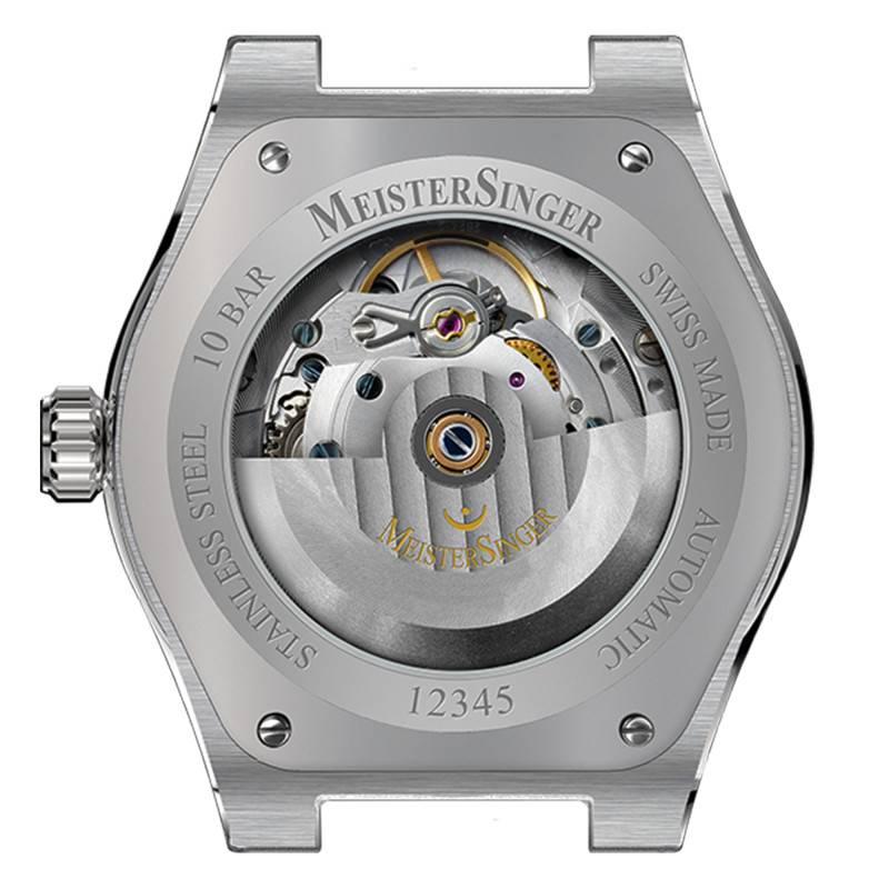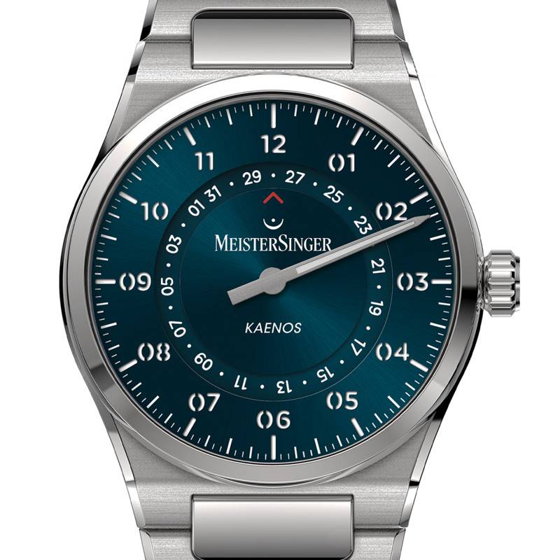 La montre MeisterSinger Kaenos Open Date se distingue par son design élégant et sophistiqué, inspiré par le concept de renouveau, une idée incarnée par son appellation. Fabriquée en Suisse, elle traduit l'esprit d'évolution et d'innovation de la marque. Le boîtier rond en acier inoxydable offre une solidité et une résistance à toute épreuve, mesurant 40 mm de diamètre pour une épaisseur de 11,20 mm. Ce modèle offre une allure moderne tout en conservant des lignes claires et distinctes. L'acier de haute qualité utilisé confère à la montre une durabilité exceptionnelle, parfaite pour une utilisation quotidienne tout en étant un témoignage de l'art horloger suisse. Le fond de boîte est maintenu par des vis et est transparent, permettant une vue sur le mouvement automatique.