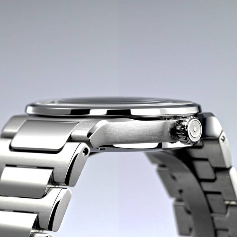 Le bracelet de la montre, conçu en acier inoxydable, complète parfaitement l'aspect harmonieux et sophistiqué de l'ensemble. La finition combine des surfaces brossées et polies, créant un contraste subtil qui accentue l'élégance du garde-temps. D'un gris argenté, il assure un confort optimal grâce à un design ergonomique et une entrecorne adaptée. Le fermoir à coulisse en argenté garantit une sécurité efficace tout en facilitant la manipulation. Ce bracelet robuste est non seulement fonctionnel, mais il est aussi un témoignage du savoir-faire artisanal qui s'associe à une modernité indiscutable.