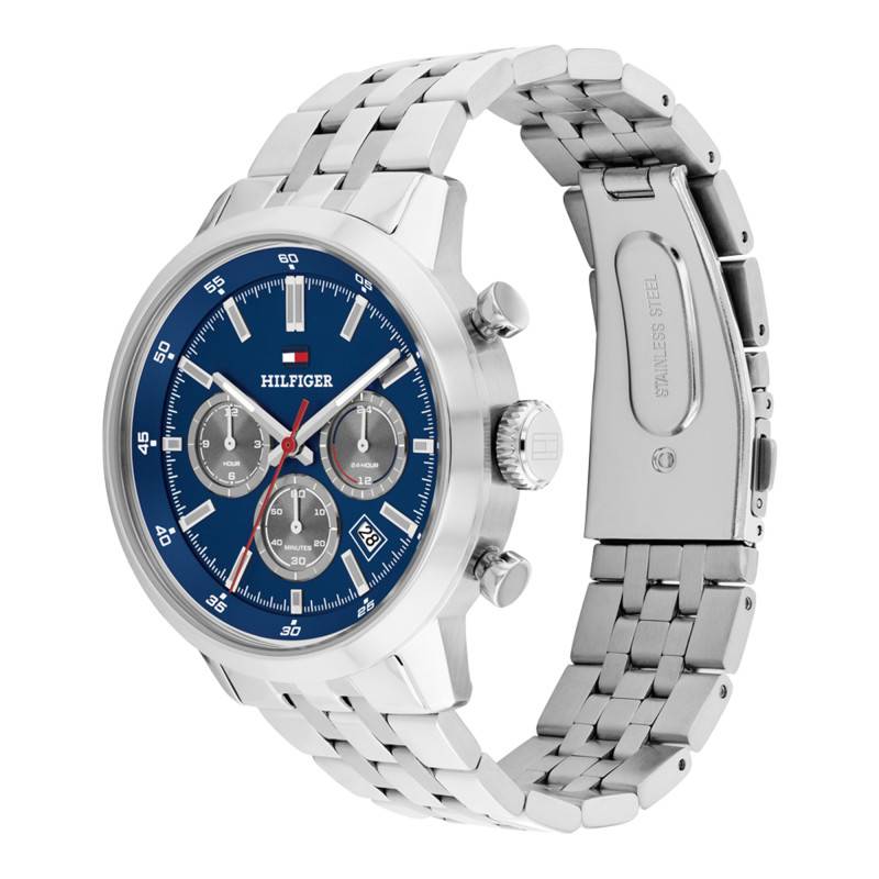 Au cœur de cette montre se trouve un mouvement quartz japonais, synonyme de précision et de fiabilité inégalées. Ce mécanisme assure une gestion parfaite des heures, minutes, secondes, et de la date, grâce à son système de contrôle avancé. La fonction chronographe illustre l'engagement de Tommy Hilfiger à offrir non seulement une esthétique irrésistible mais également des performances techniques impressionnantes.