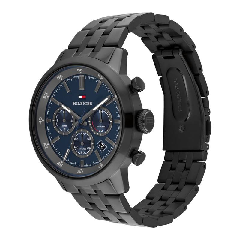 Le bracelet de la montre Tommy Hilfiger Kent constitue une extension naturelle et raffinée de son design global. Réalisé intégralement en acier inoxydable, sa finition satinée noire apporte une touche élégante et contemporaine, tout en garantissant durabilité et confort au quotidien. Avec une largeur d’entrecorne de 19,50 mm, ce bracelet est parfaitement calibré pour offrir une tenue sécurisée et confortable sans compromettre le style. Son fermoir à boucle déployante facilite un ajustement précis et une fixation fiable, assurant que la montre reste solidement attachée autour du poignet, tout en étant facile à mettre et à enlever.