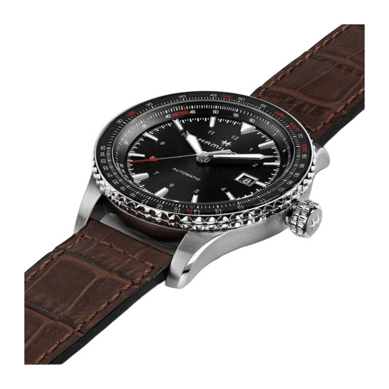 Le mécanisme présent dans ce modèle est un mouvement automatique de fabrication suisse. Il s'agit d'un calibre Hamilton H-10 qui se base sur un ETA C07.611 afin de vous délivrer avec précision sur le long terme les fonctions heures, minutes, secondes et la date. Ce mouvement détient une fréquence d'oscillation de 21'600 alternances par heure et vous délivre une réserve de marche de 80 heures.