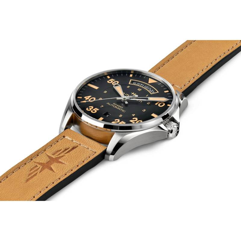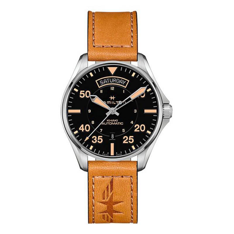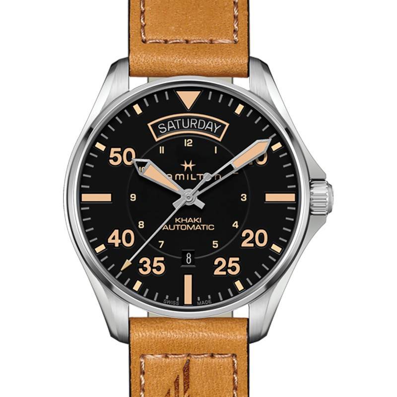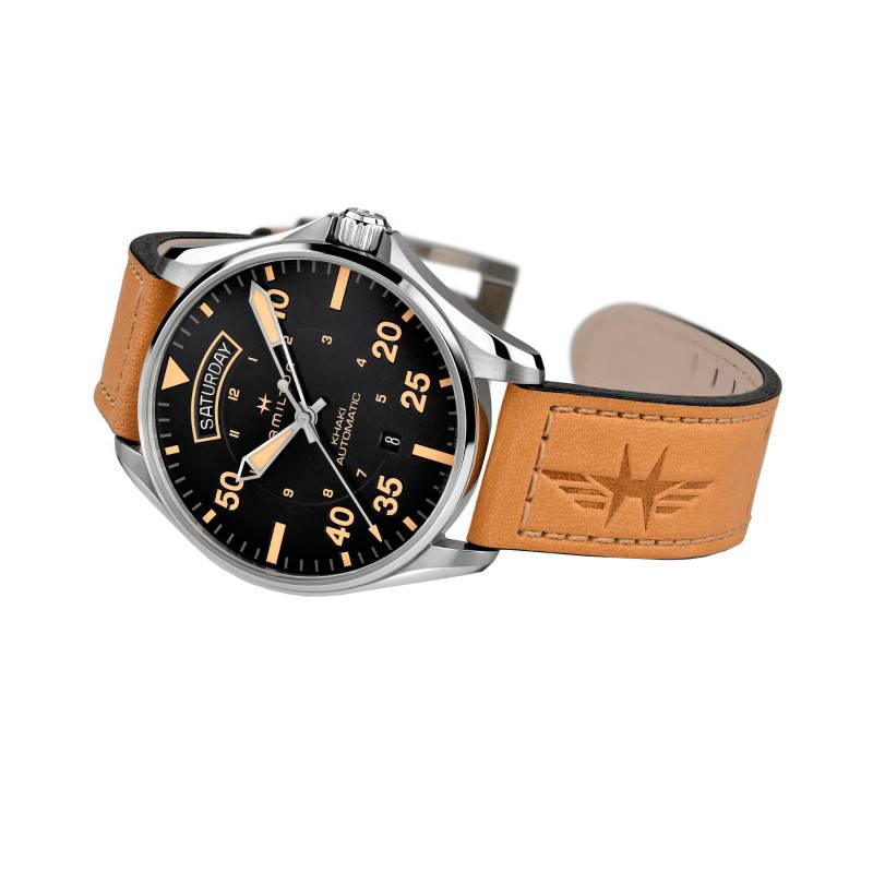 Vivez l'esprit aviateur au travers de ce garde-temps automatique signé par Hamilton et portez ce look si fort de caractère, créé à partir de matériaux modernes et de haute qualité. Avec un design sportif et casual, cette montre reprend les codes de l'aviation à travers le design des éléments qui composent son cadran. Avec des teintes chaudes et contemporaines, elle se portera au quotidien. Ce modèle possède un boîtier en acier inoxydable brossé de 42mm de diamètre pour 12,5mm d'épaisseur. Il est surmonté d'un verre saphir aux propriétés inrayables, encerclé d'une lunette polie. Son fond de boîte vissé laisse entrevoir la beauté de la masse oscillante de son mouvement automatique par sa transparence. Enfin, notez qu'une couronne protégée de deux rehauts trouve sa place à trois heures.
