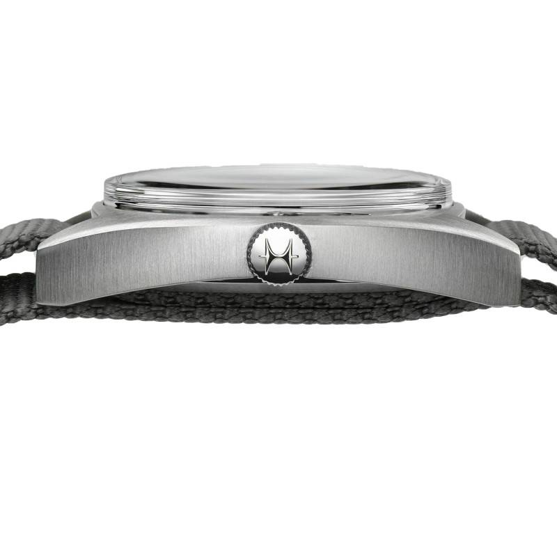 Cette montre est animée par l'incroyable mouvement H-50 à remontage manuel. Ce mouvement est exclusif et vous offrira une précision d'exception. Ce modèle dispose d'une réserve de marche étendue allant jusqu'à 80 heures et vous garantira une fiabilité maximale. De qualité suisse, son affichage analogique vous indiquera des heures, des minutes et des secondes.