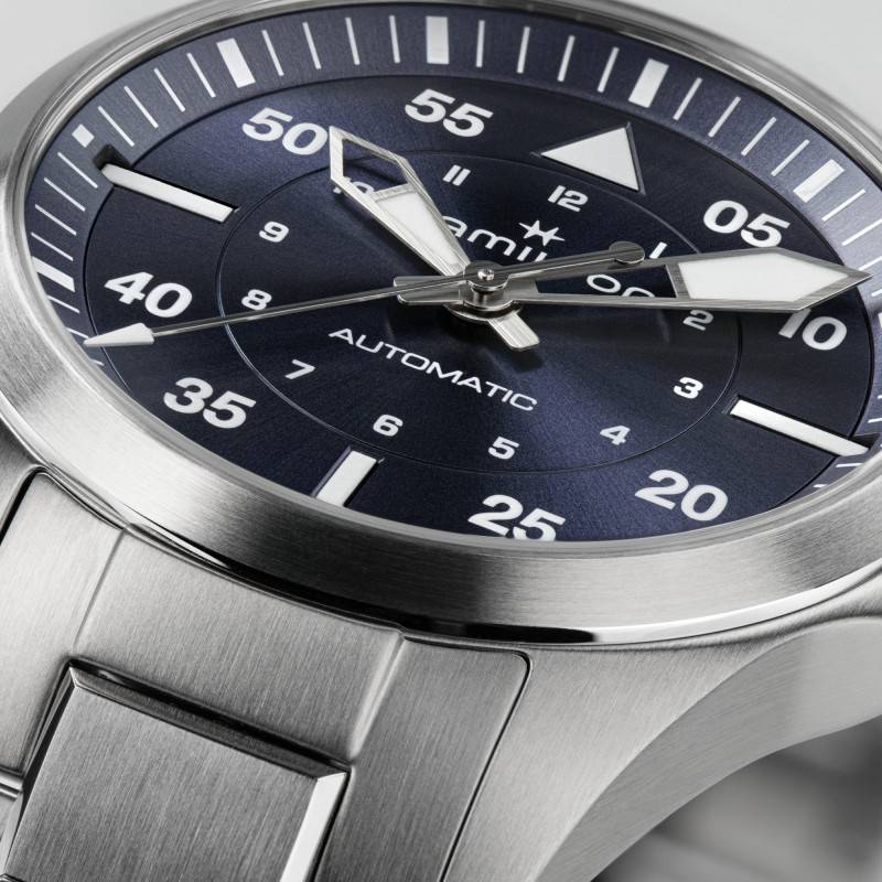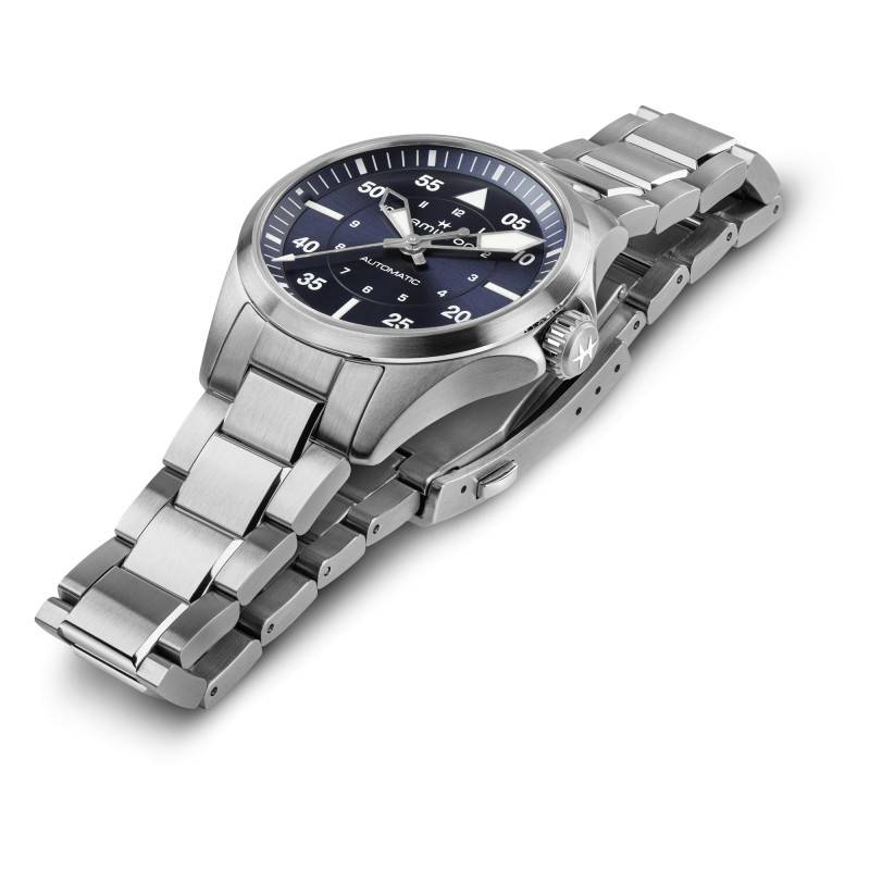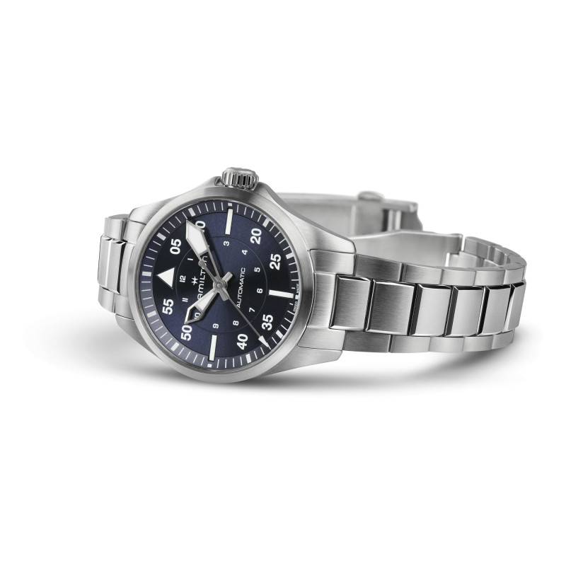 Hamilton crée des modèles soumis à un esprit patriotique avec un style résolument américain. La marque est très impliquée dans l'histoire et l'évolution technologique de son pays tel que le milieu de l'aviation d'où elle tire principalement son inspiration. Les designs de ses montres reflètent le plus souvent ce secteur, faisant ainsi le bonheur des passionnés d'aventures aériennes et même des excursions sur la terre ferme. Cette charmante montre Pilot Auto H76215140 est issue de la collection Khaki Aviation. Elle est parfaite pour habiller les poignets féminins avec charisme en toute circonstance. Cette dernière comprend un boîtier de couleur argentée fabriqué en acier inoxydable brossé. De forme ronde, il mesure 36 mm de diamètre et 11,16 mm d'épaisseur et se trouve surplombé par un verre saphir muni d'un double traitement antireflet qui facilite la lecture des indicateurs. Connu pour sa grande résistance, il assure la protection du cadran contre les rayures et les chocs auquel il est exposé au quotidien. Le bouton remontoir qui est positionné à 3 heures servira au réglage des heures et des minutes selon votre convenance. Enfin, le fond de boîte transparent de ce garde-temps accordera une étanchéité de 10 ATM.