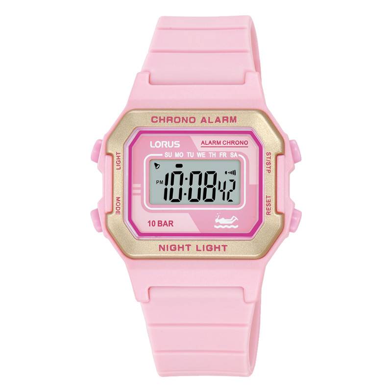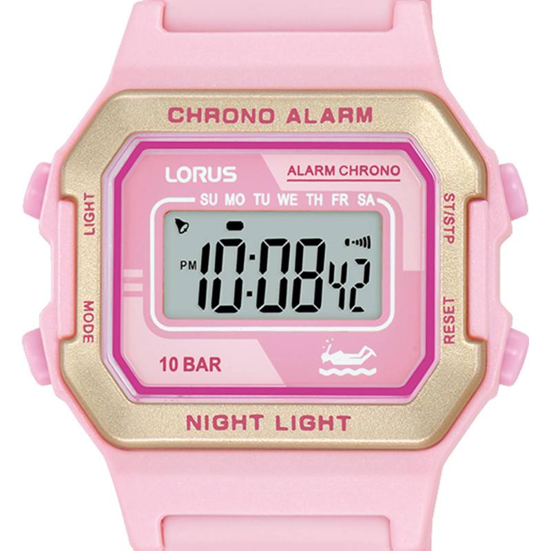 La montre pour enfant Lorus Kids Digital Quartz R2325QX9 incarne parfaitement l'alliance du style ludique et de la fonctionnalité remarquable. Conçue spécifiquement pour les jeunes amateurs de montres, elle présente un boîtier octogonal en plastique rose, à la fois robuste et léger, idéal pour résister aux escapades quotidiennes d'un enfant. Son diamètre de 31 mm et son épaisseur de 11 mm garantissent un confort optimal pour les poignets plus petits, permettant une utilisation aisée et agréable. Le fond de boîte est maintenu par des vis, assurant à la fois sécurité et durabilité.