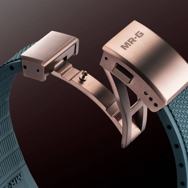 Le bracelet en caoutchouc robuste qui équipe ce modèle est spécialement conçu pour résister au vieillissement, à la décoloration, et aux taches. De couleur verte foncée, il est parfaitement accordé au boîtier de la montre, tout en offrant un confort inégalé au quotidien et lors d'activités intenses, comme la natation ou la plongée. Le bracelet est décoré d'un motif bishamon kikko, symbole de force et de résilience. L'attache se fait par une élégante boucle déployante, ajoutant une touche sophistiquée et une résistance accrue, grâce au même traitement AIP que le boîtier.