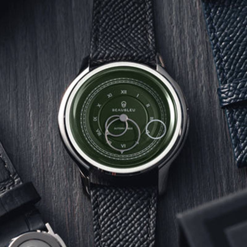 Cette sublime pièce d'horlogerie est une véritable représentation du savoir-faire artisanal français. La Pièce N°1 de Beaubleu se distingue par un boîtier rond en acier inoxydable 316L, mesurant 39 mm de diamètre et 10,20 mm d'épaisseur, ce qui confère à la montre un aspect robuste tout en restant raffinée. Les finitions alternées mates et brillantes apportent une sophistication unique, soulignant chaque courbe du boîtier. Fabriquée en France, cette montre incarne le luxe moderne avec une touche de design contemporain et chaque exemplaire est une œuvre d'art numérotée individuellement, limitée à seulement 888 pièces. Le boîtier est également doté d'une couronne discrètement placée à 3 heures, préservant ainsi l'harmonie visuelle de la montre.