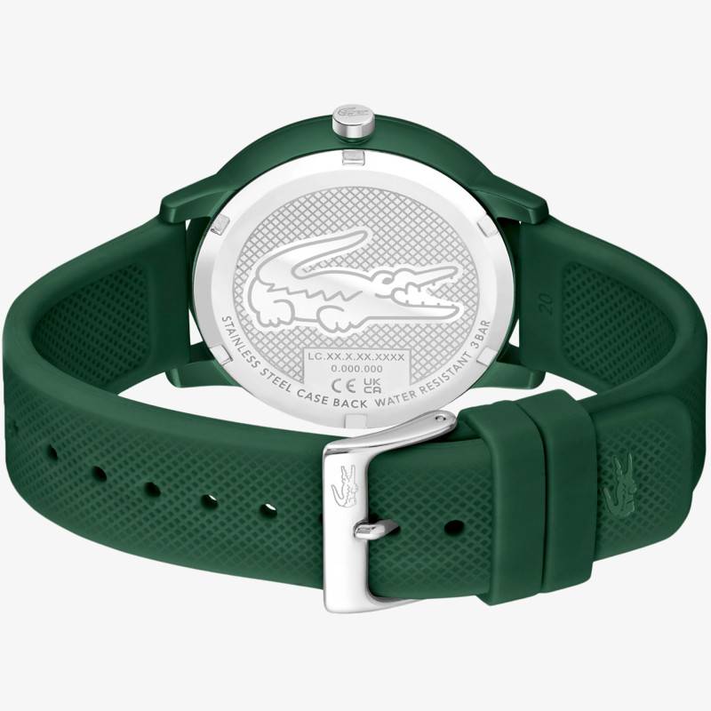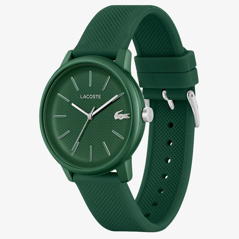 Référence incontournable de la mode, la marque française Lacoste est aujourd'hui symbole d'élégance et de raffinement sportif. Depuis sa création en 1933, elle véhicule les valeurs de son fondateur, la légende du tennis français René Lacoste à travers des créations décontractées au design intemporel et chic. Son crocodile orne aujourd'hui également des gardes-temps sophistiqués et tendances qui inspirent différents styles, dont cette ravissante montre Lacoste.12.12 Move 2011238. Dans un esprit frais et élégant, elle sublimera les poignets de la gent masculine en habillant avec délicatesse n'importe quelle apparence. Son boîtier rond est fabriqué en aluminium et dispose d'une délicate couleur verte pour un rendu décalé et intemporel. Pesant 47 grammes, il mesure 42 mm de diamètre et 9,40 mm d'épaisseur, de quoi assurer un port agréable tout au long de la journée. Il est surmonté d'un verre minéral qui surplombe le cadran. Par ailleurs, une couronne grise s'installe à 3h pour vous servir lors du réglage manuel des heures et des minutes.